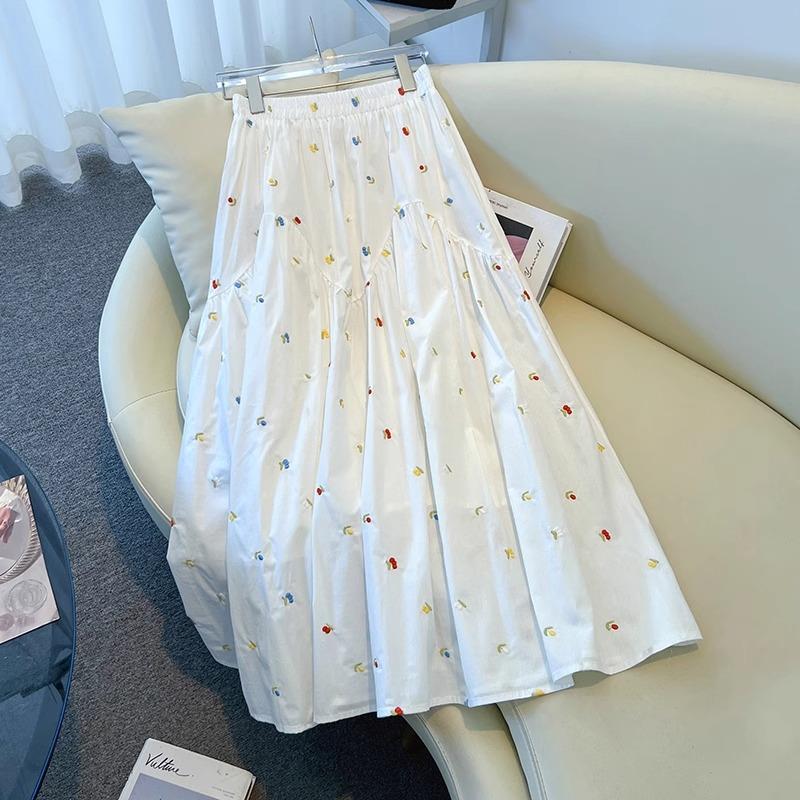 白色半身裙女夏2025新款小个子a字高腰中长款气质大摆百褶裙子女
