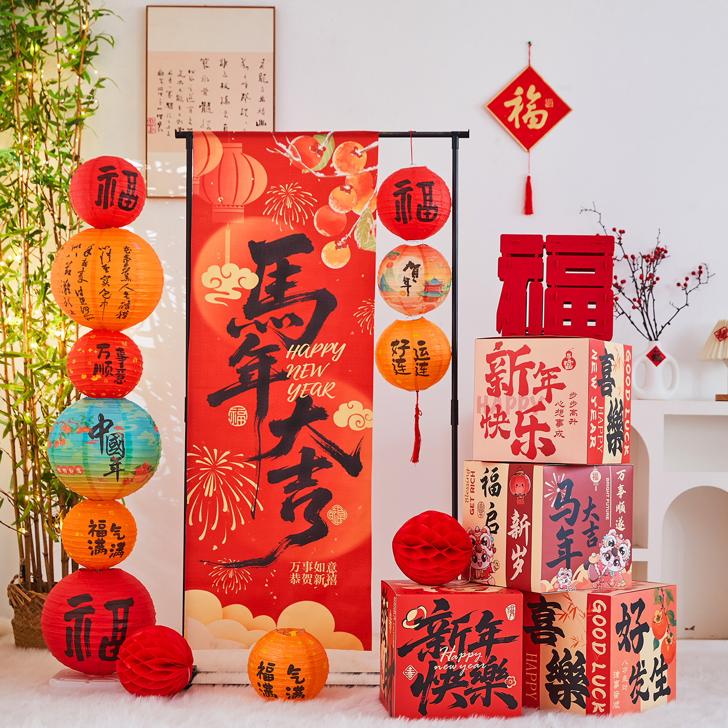2026马年春节福字灯笼堆头套装