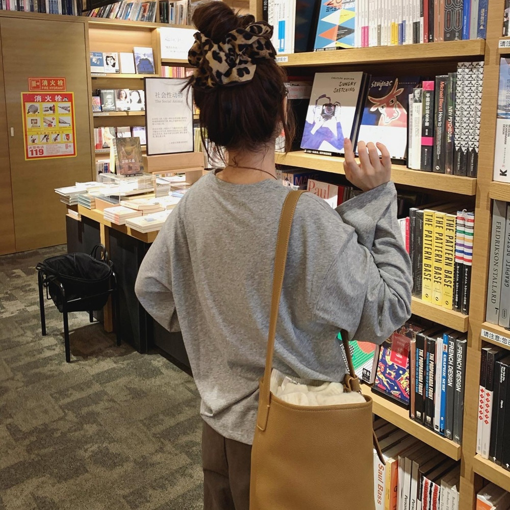 徐蹦蹦 巨巨百搭 秋季简约字母宽松圆领长袖T恤女休闲上衣打底衫