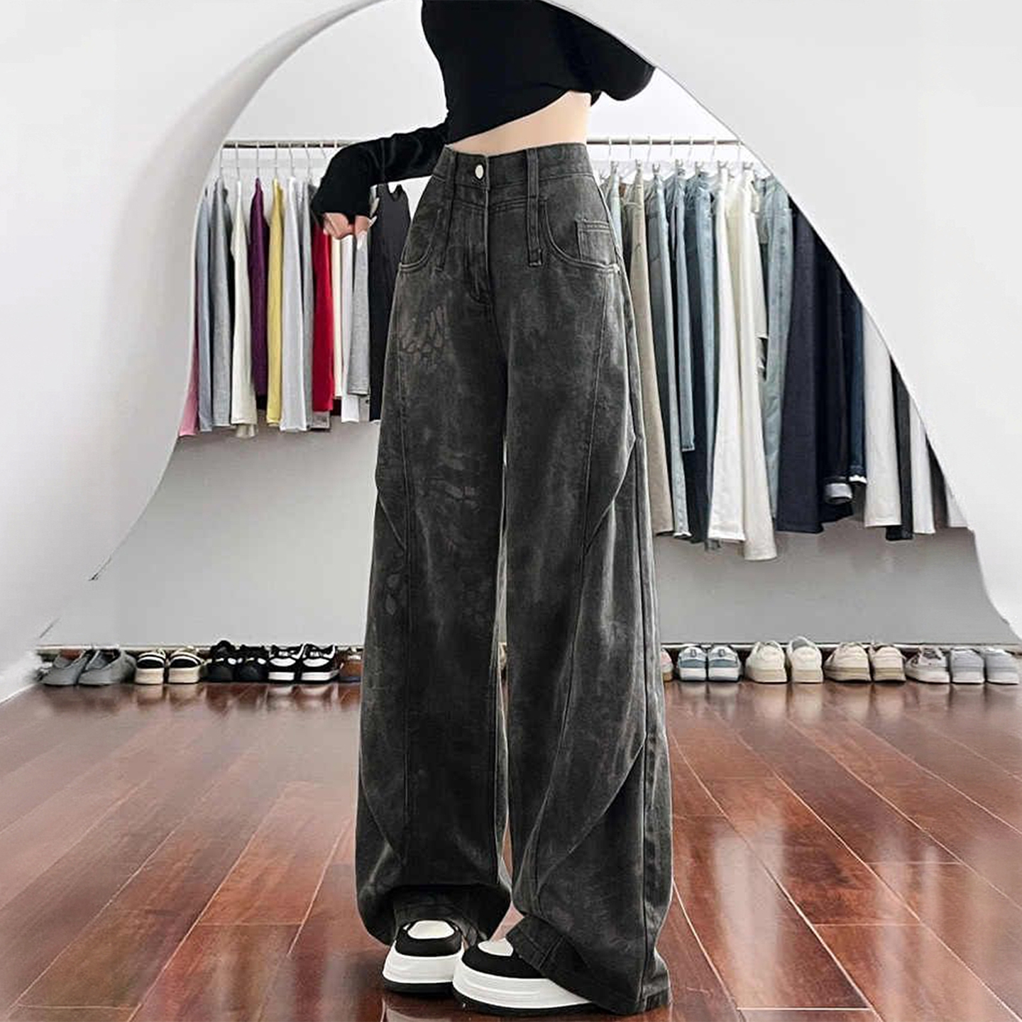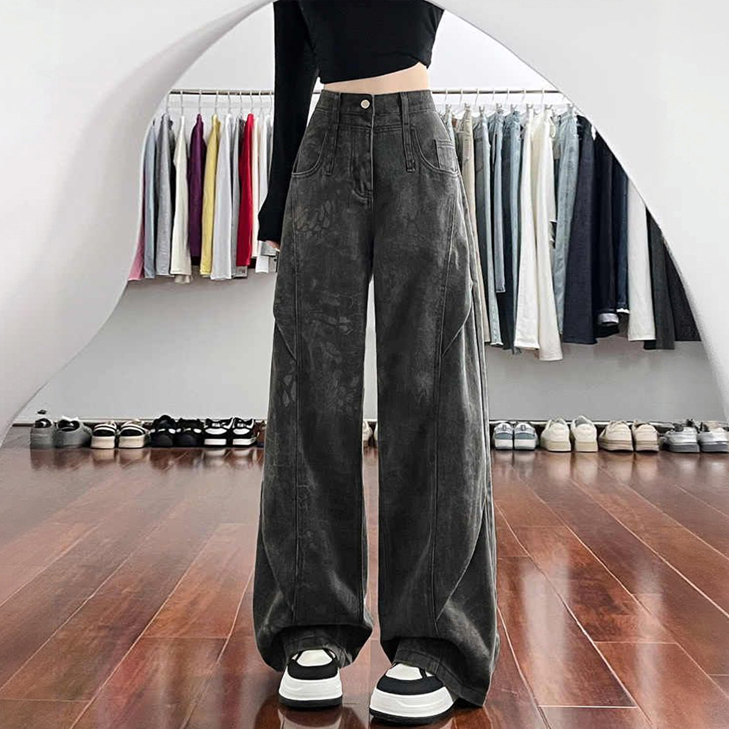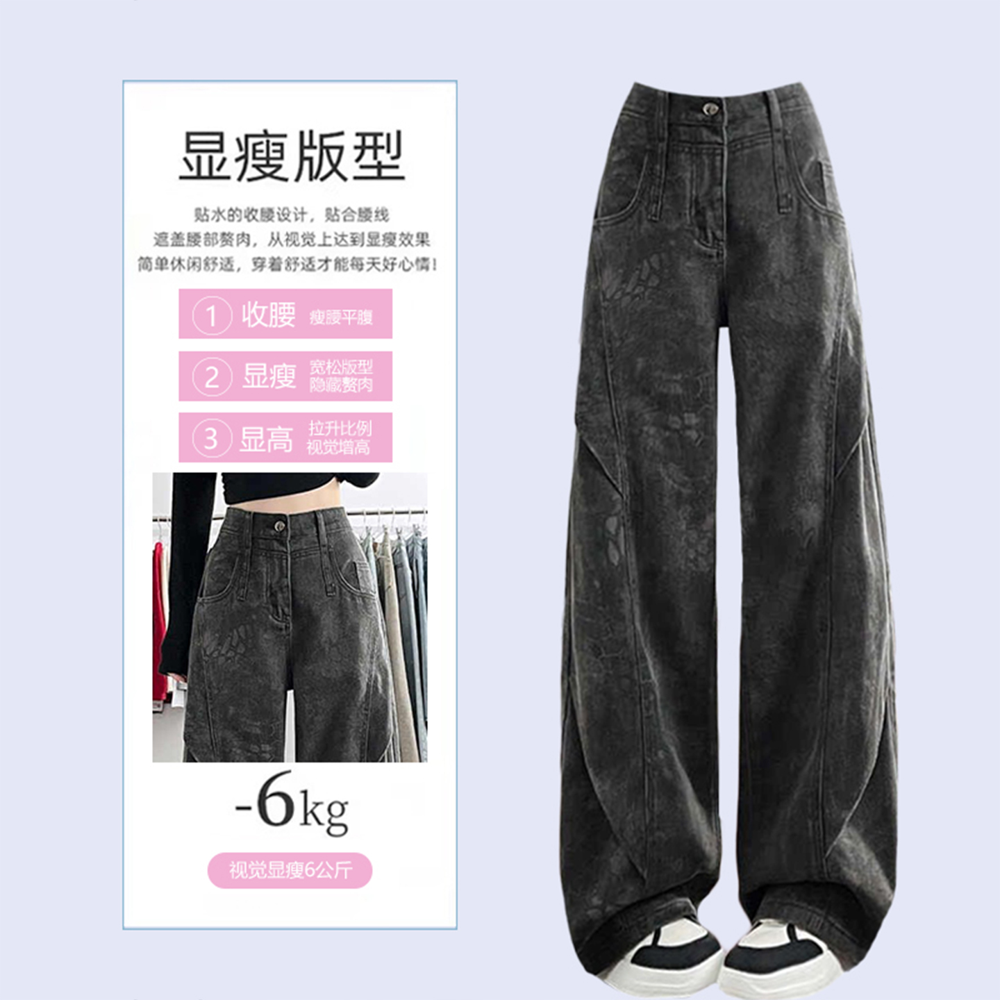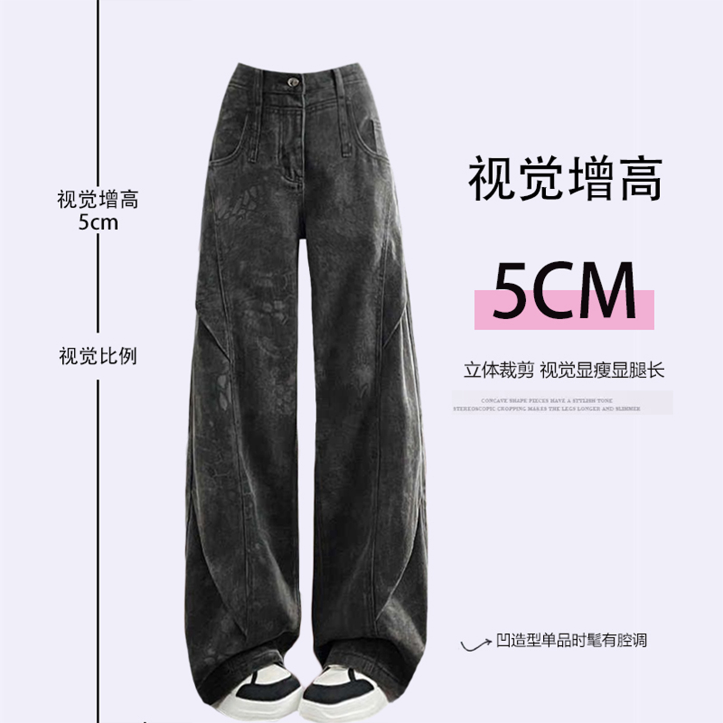 胖mm大码女装黑色高街辣妹风牛仔裤女秋季遮胯显瘦设计感阔腿裤子