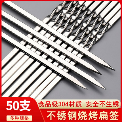304不锈钢签子烧烤扁签家用羊肉串烤肉铁签子烧烤必备工具不生锈