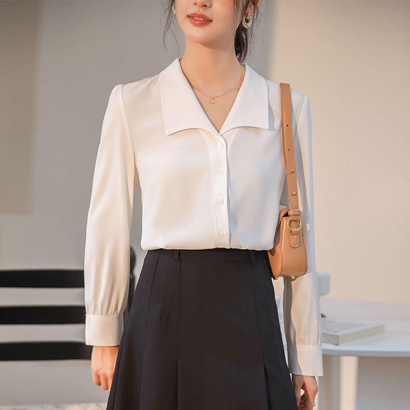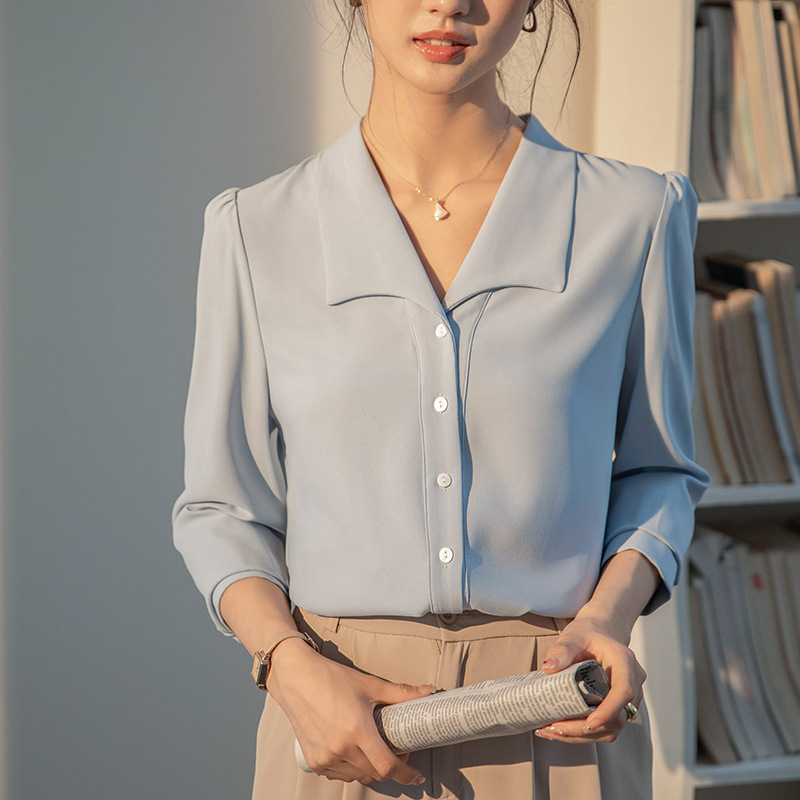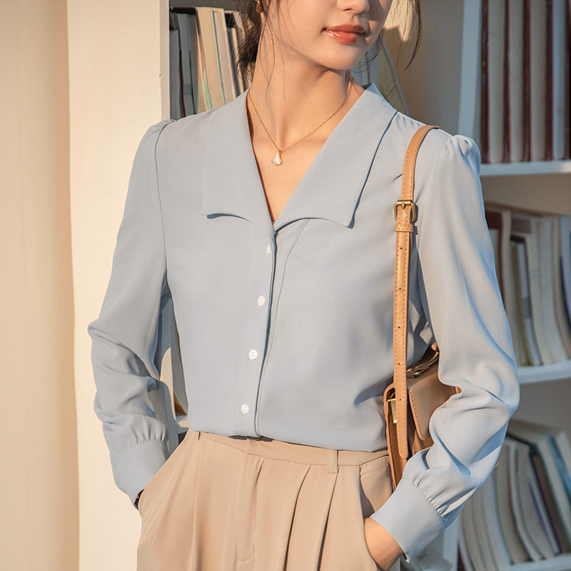 2025新款女装蓝色长袖衬衫女秋季职业通勤小衫法式上衣面试衬衫