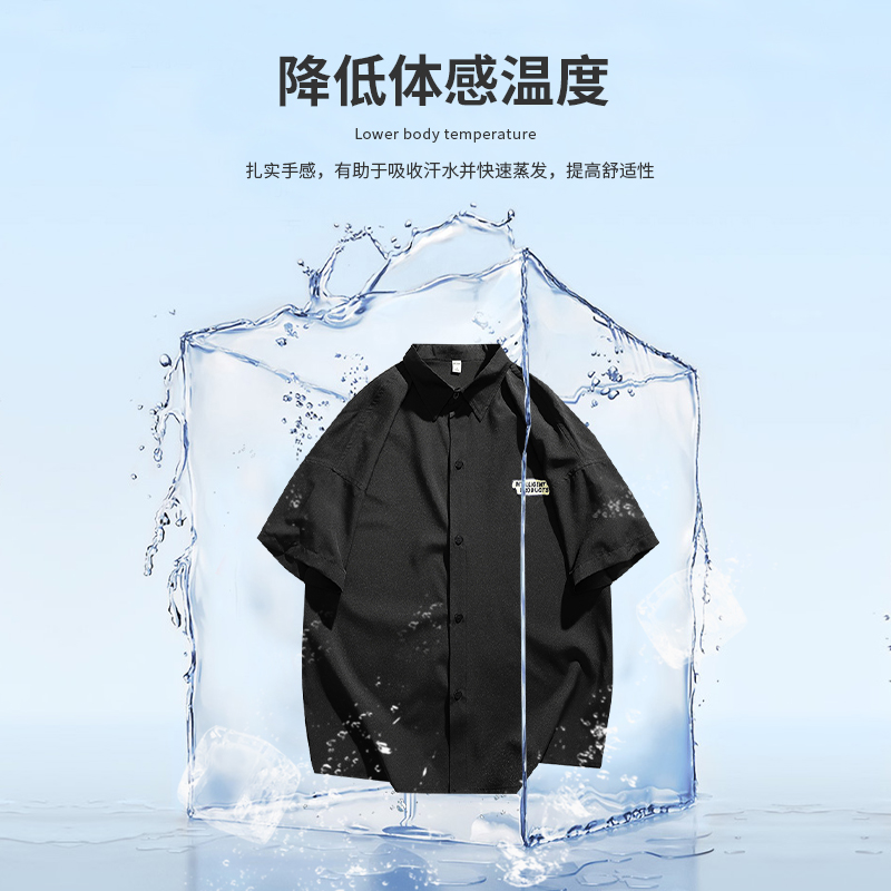 黑色衬衫男短袖夏季宽松高级垂感痞帅休闲冰丝黑衬衣男士半袖外套