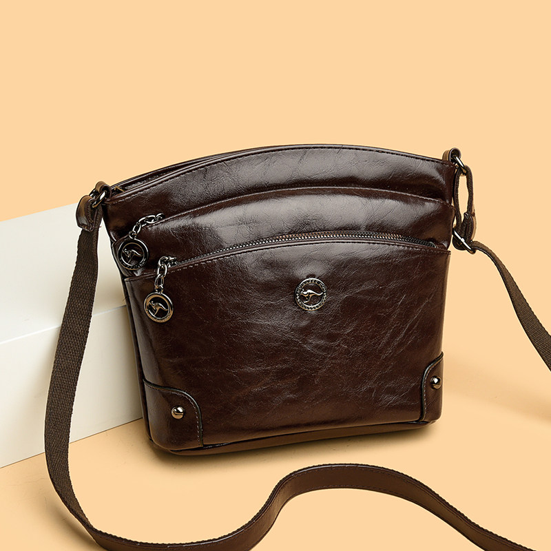 2025新款女包软皮单肩包休闲水桶包多拉链斜挎女士小包包中年妈妈