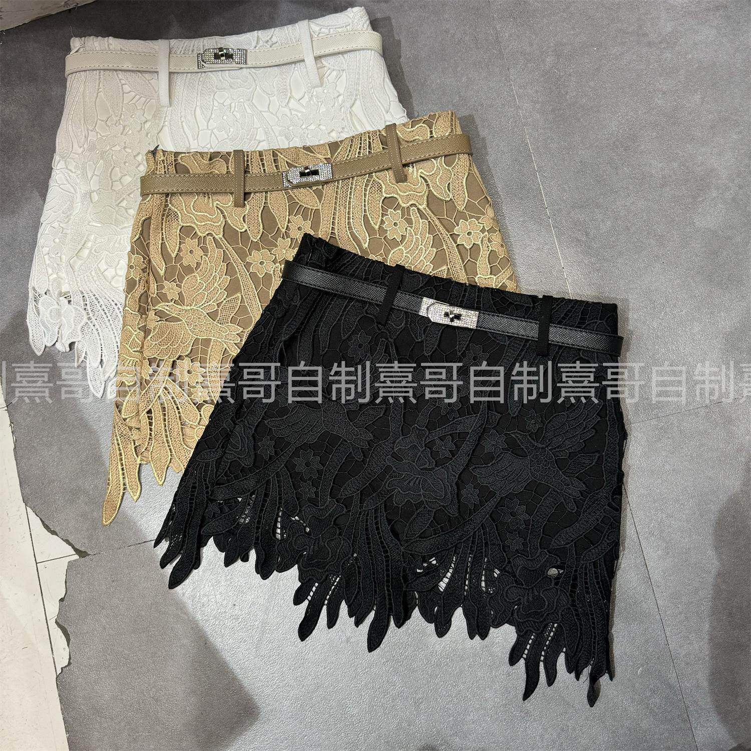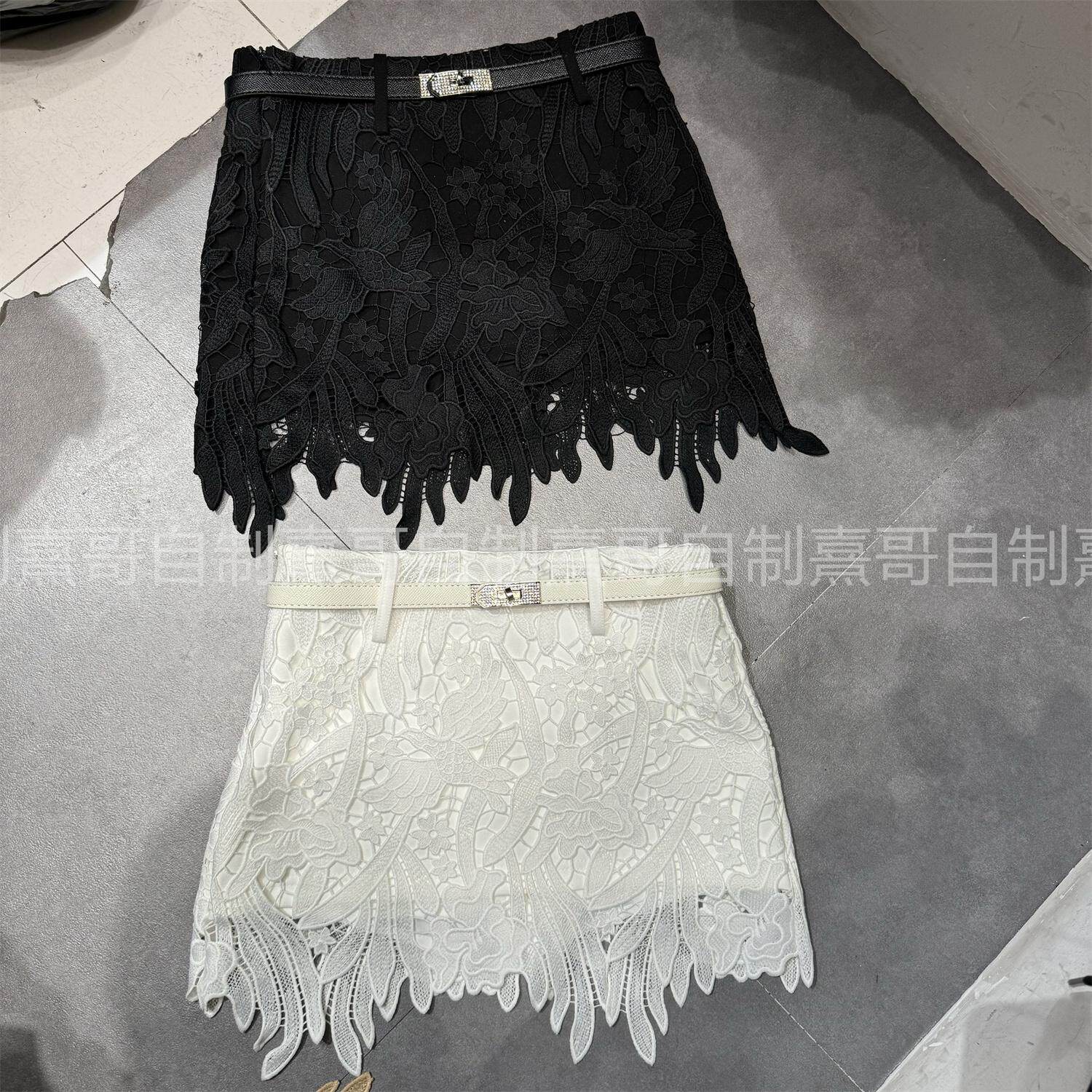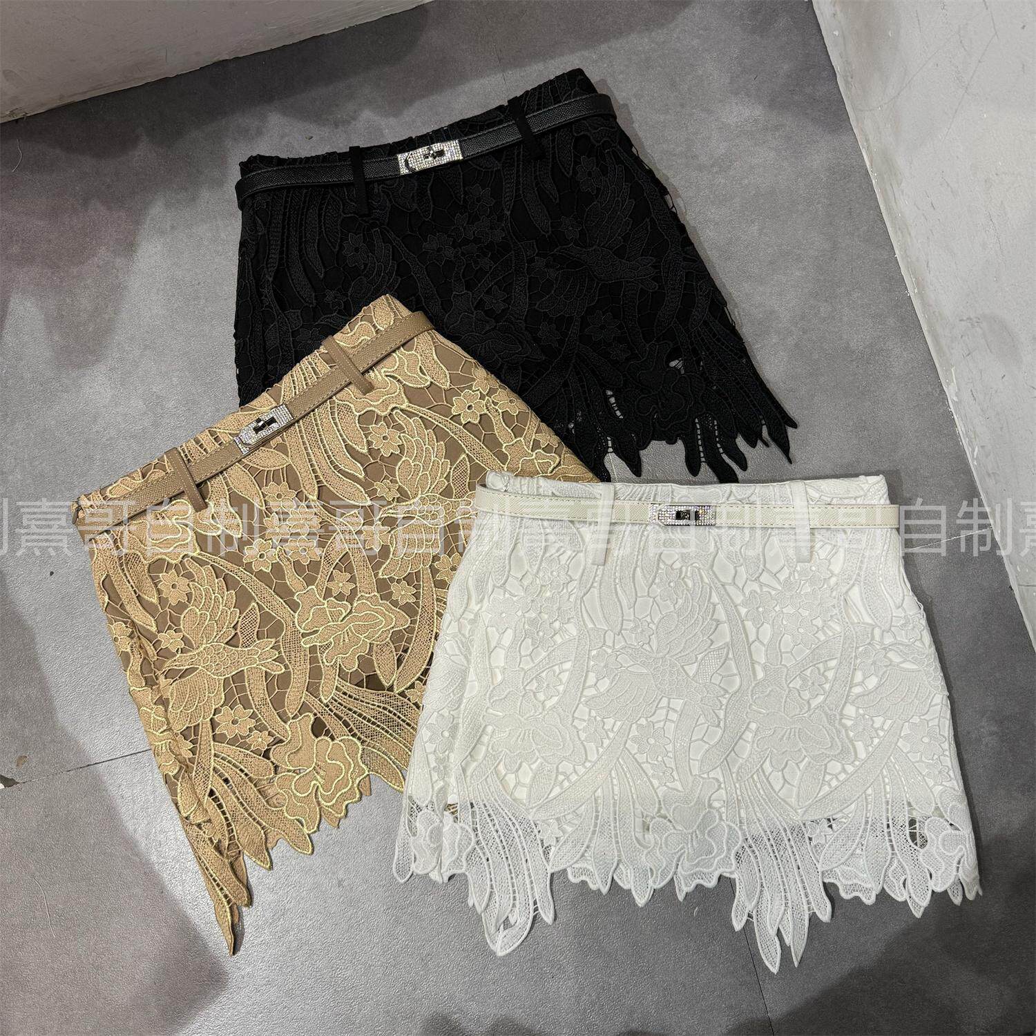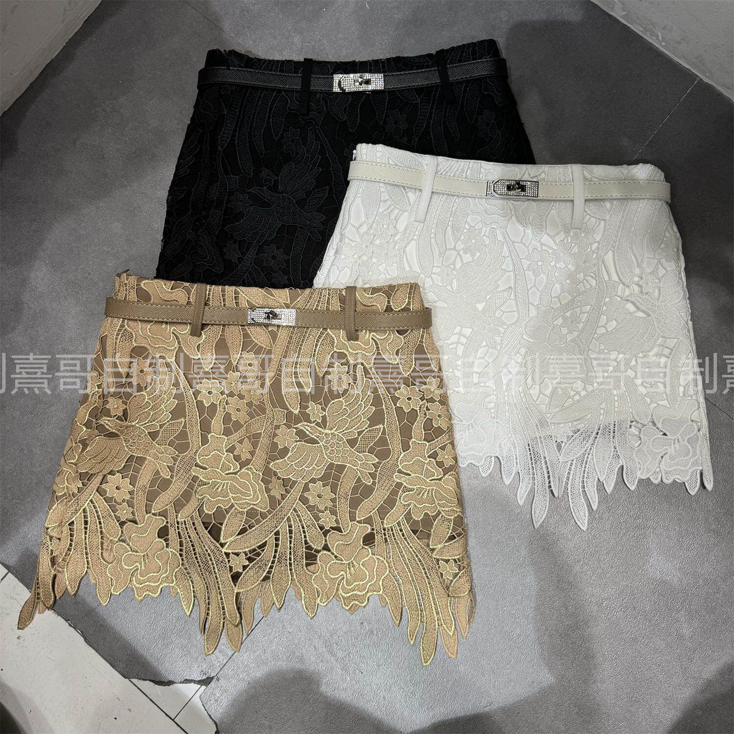 温柔气质立体花朵蕾丝包臀半身裙女冬季新款高腰显瘦A字皮带短裙