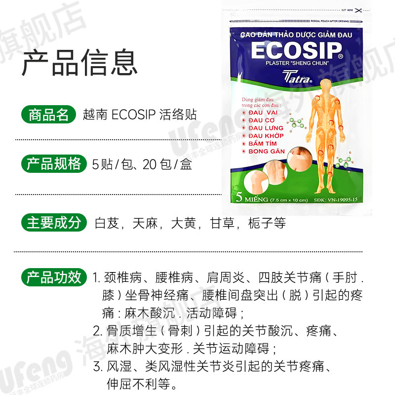 ecosip活络贴肩颈背腰肌劳损关节炎疼痛风湿酸痛跌打扭伤