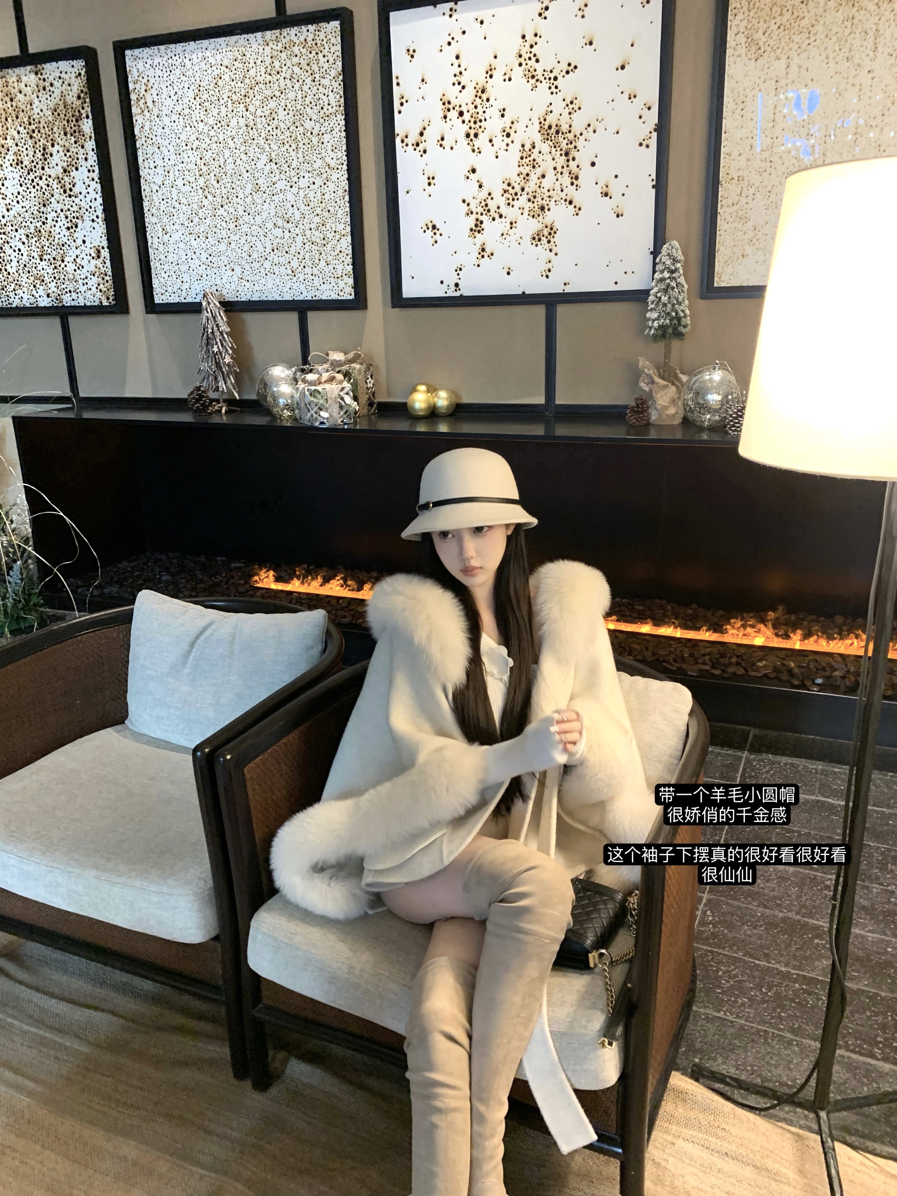 POET WONG【娇娇斗篷】仙仙定染超大狐狸毛+全羊毛韩女双面呢大衣