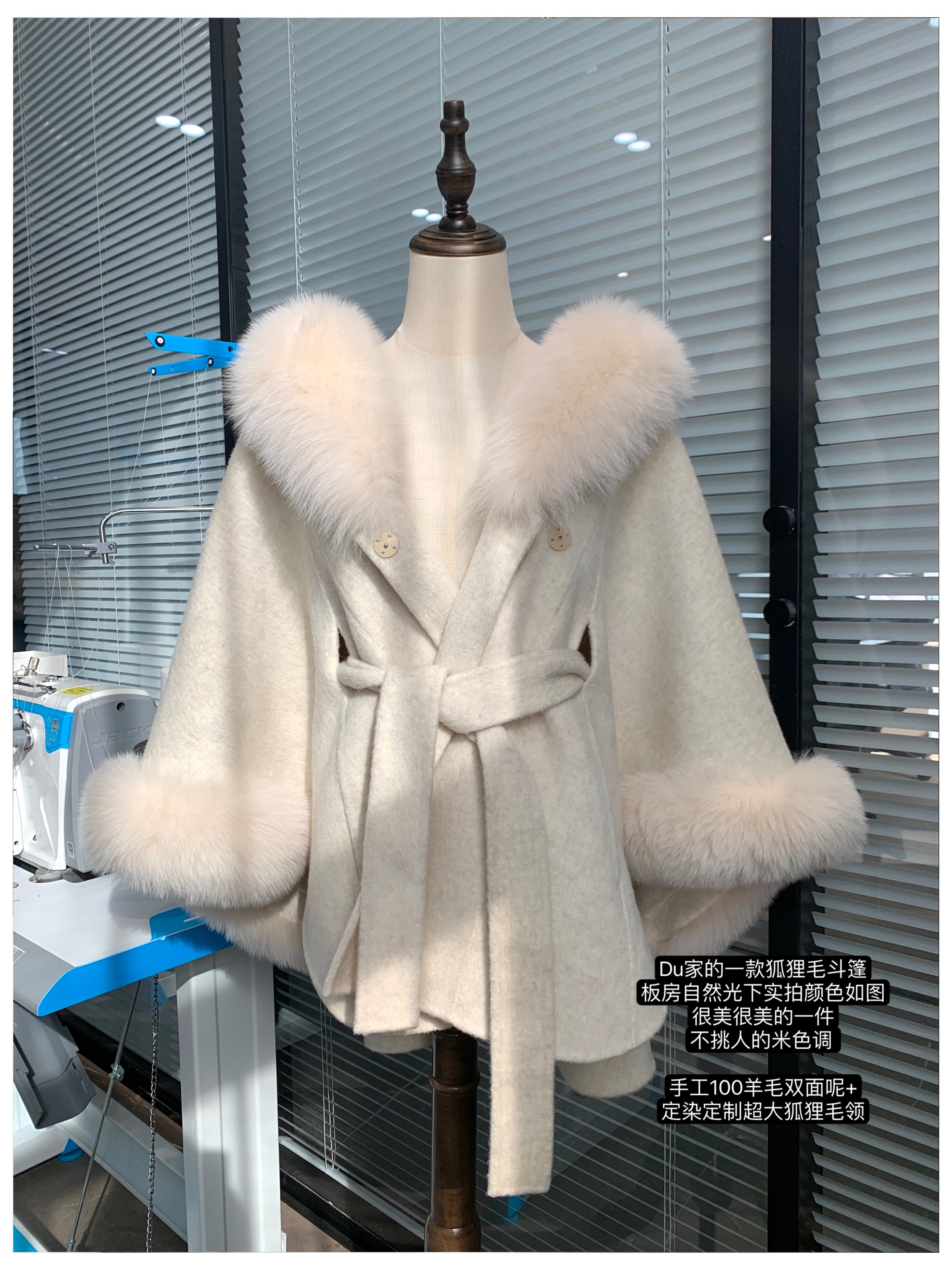 定制大狐狸毛+全羊毛双面呢斗篷