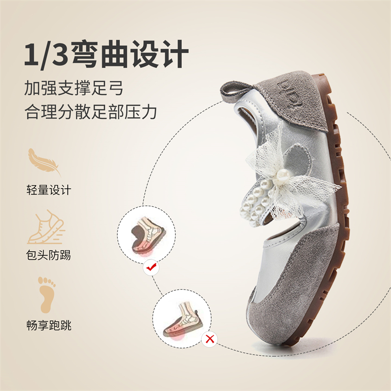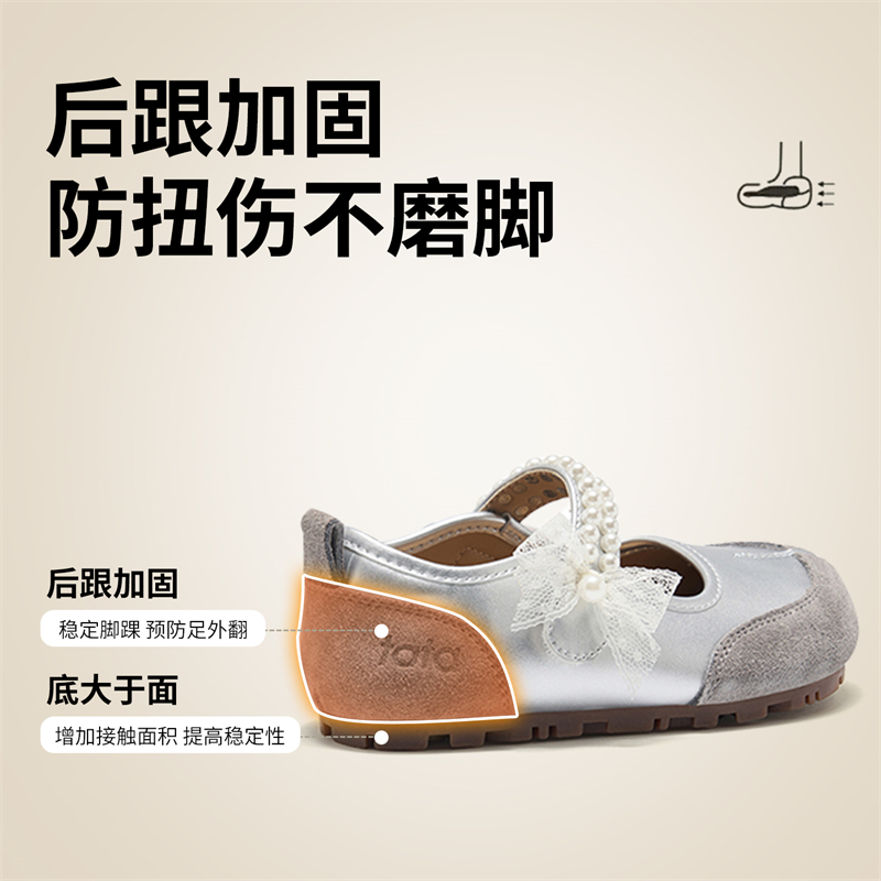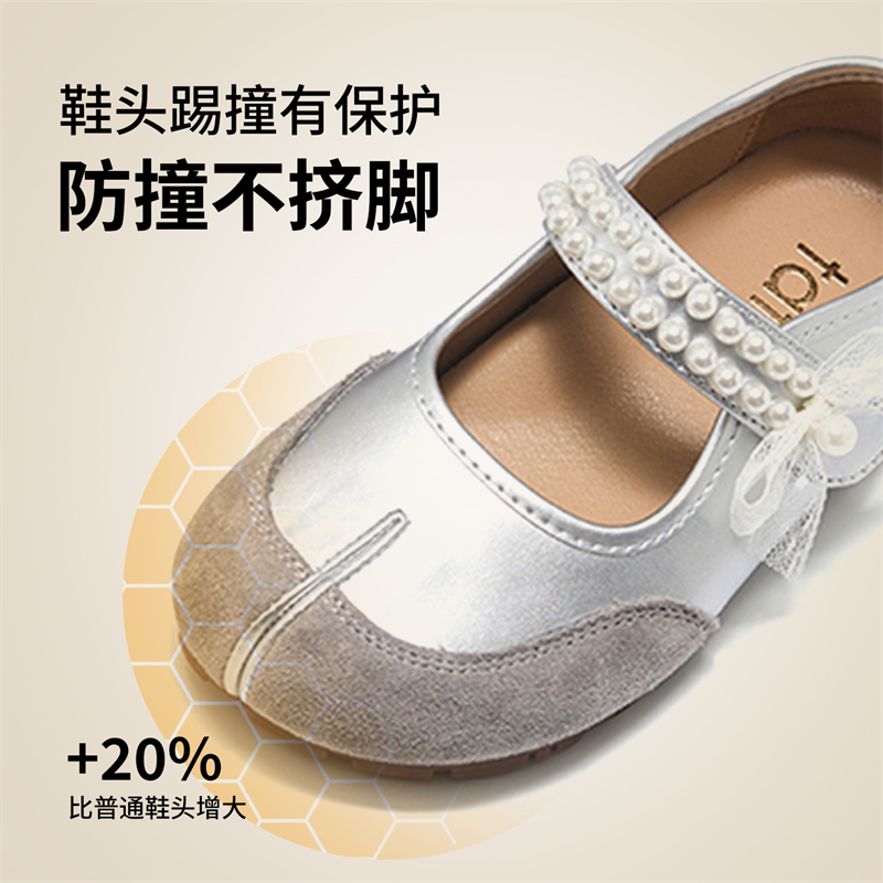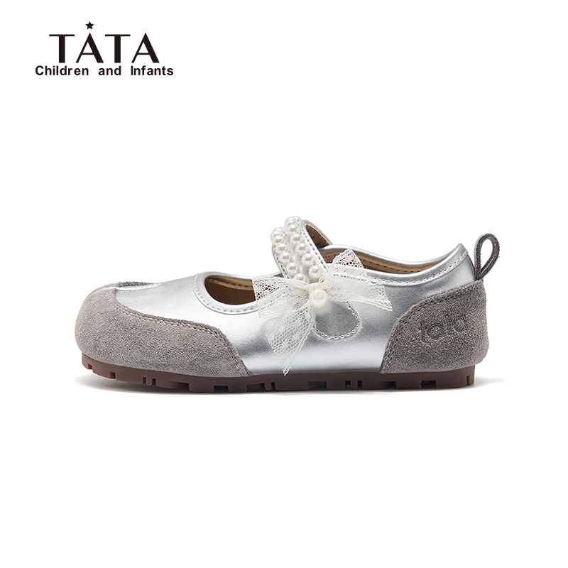 TATA童鞋儿童小皮鞋2025秋季新款女童蕾丝珍珠玛丽珍软底公主单鞋