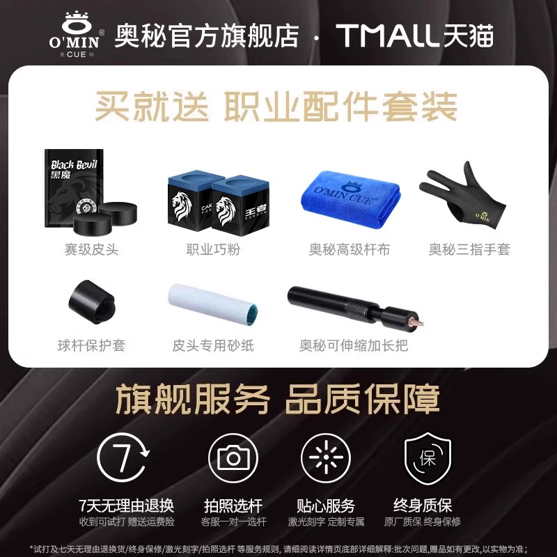 omin奥秘台球杆海神斯诺克小头杆中式黑八专用杆官方旗舰店桌球杆