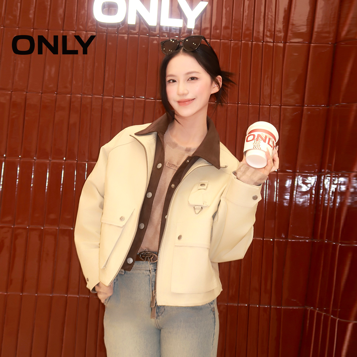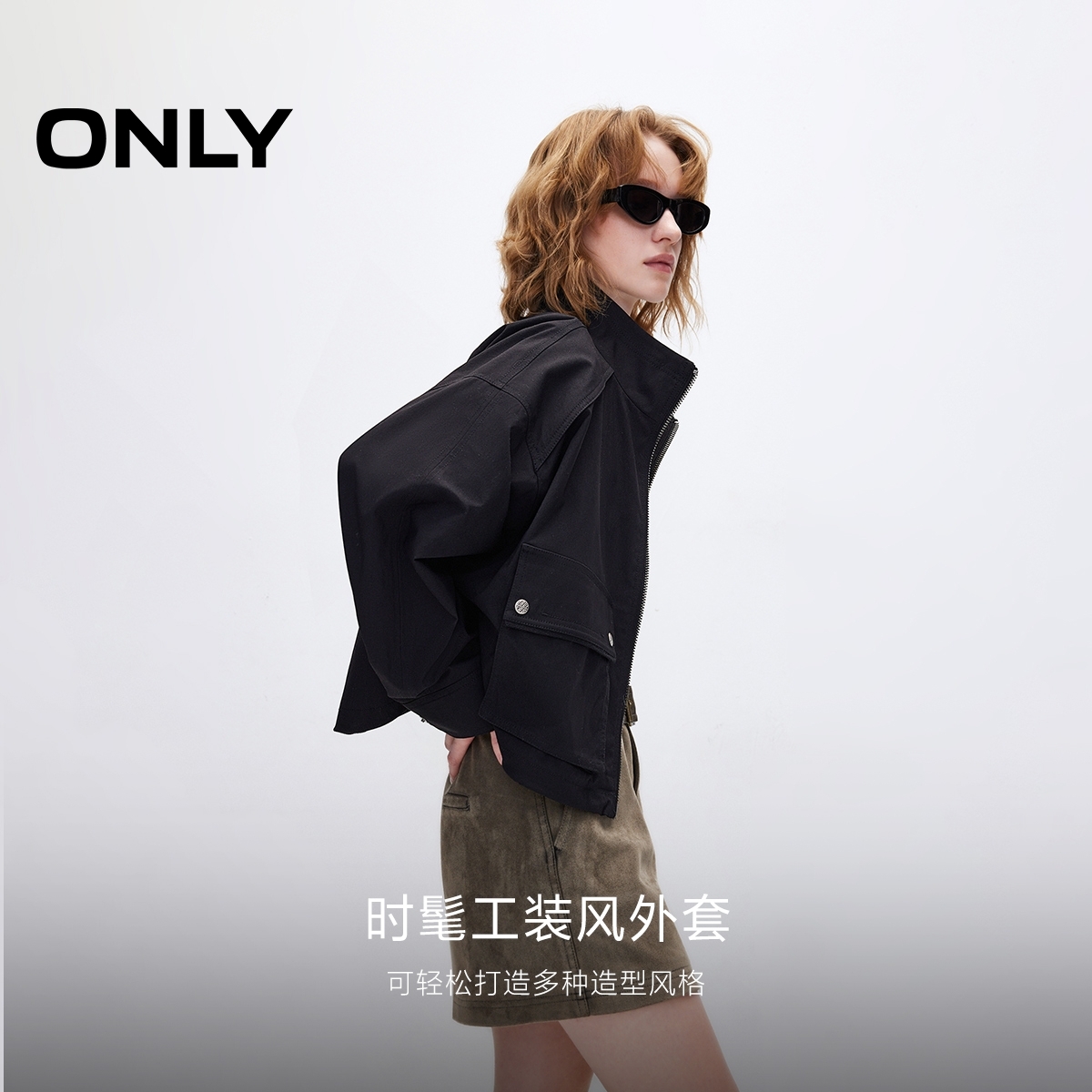 ONLY奥莱2025秋季新款时髦工装风短款宽松长袖风衣外套女
