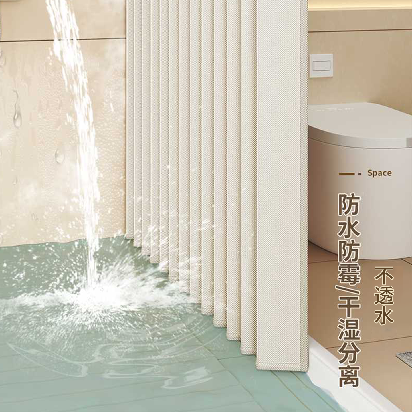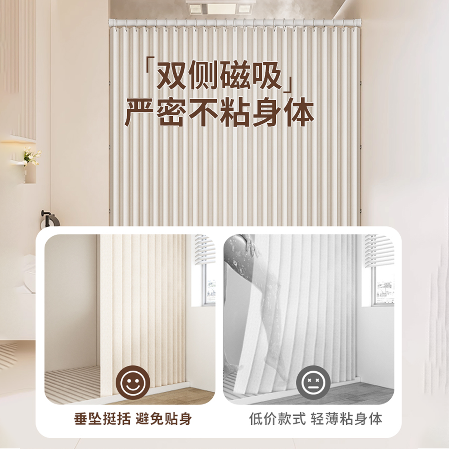 防水磁吸覆膜浴帘套装浴室隔断折叠卫生间干湿分离隐形打孔帘