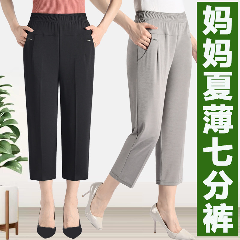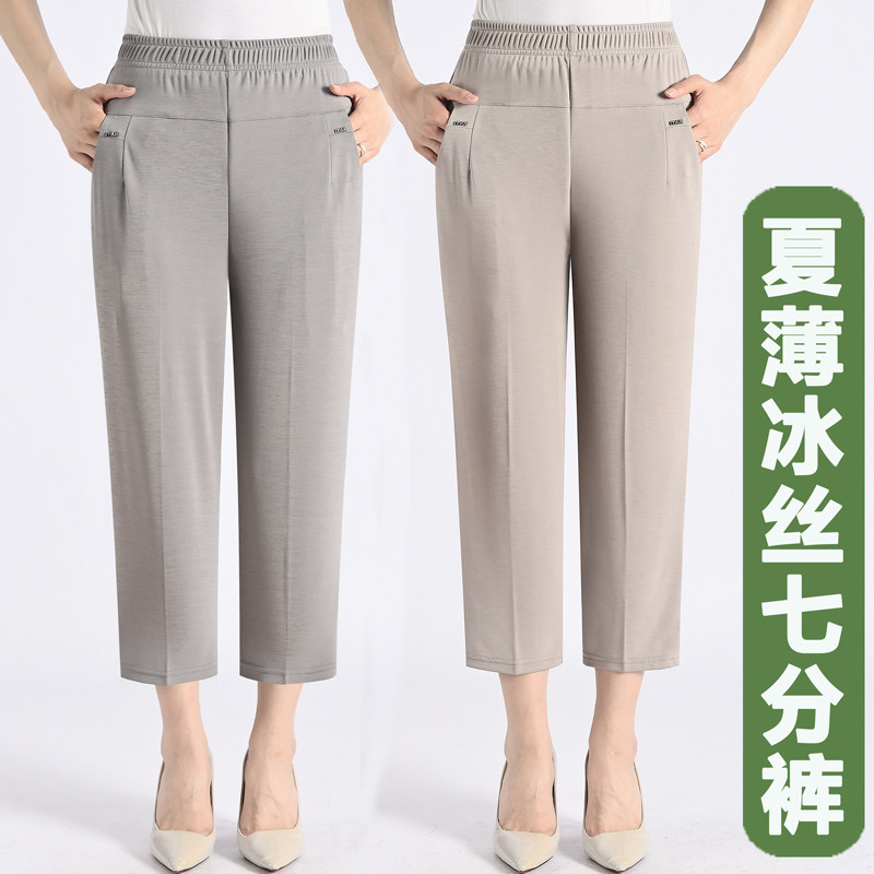 2023新款妈妈冰丝七分裤夏季薄款小个子奶奶裤中老年女裤宽松大码