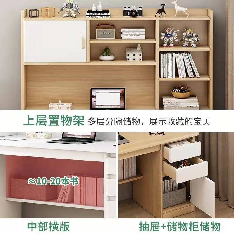 家用台式写字桌出租屋简约学生学习桌子电脑桌书桌书架组合一体桌