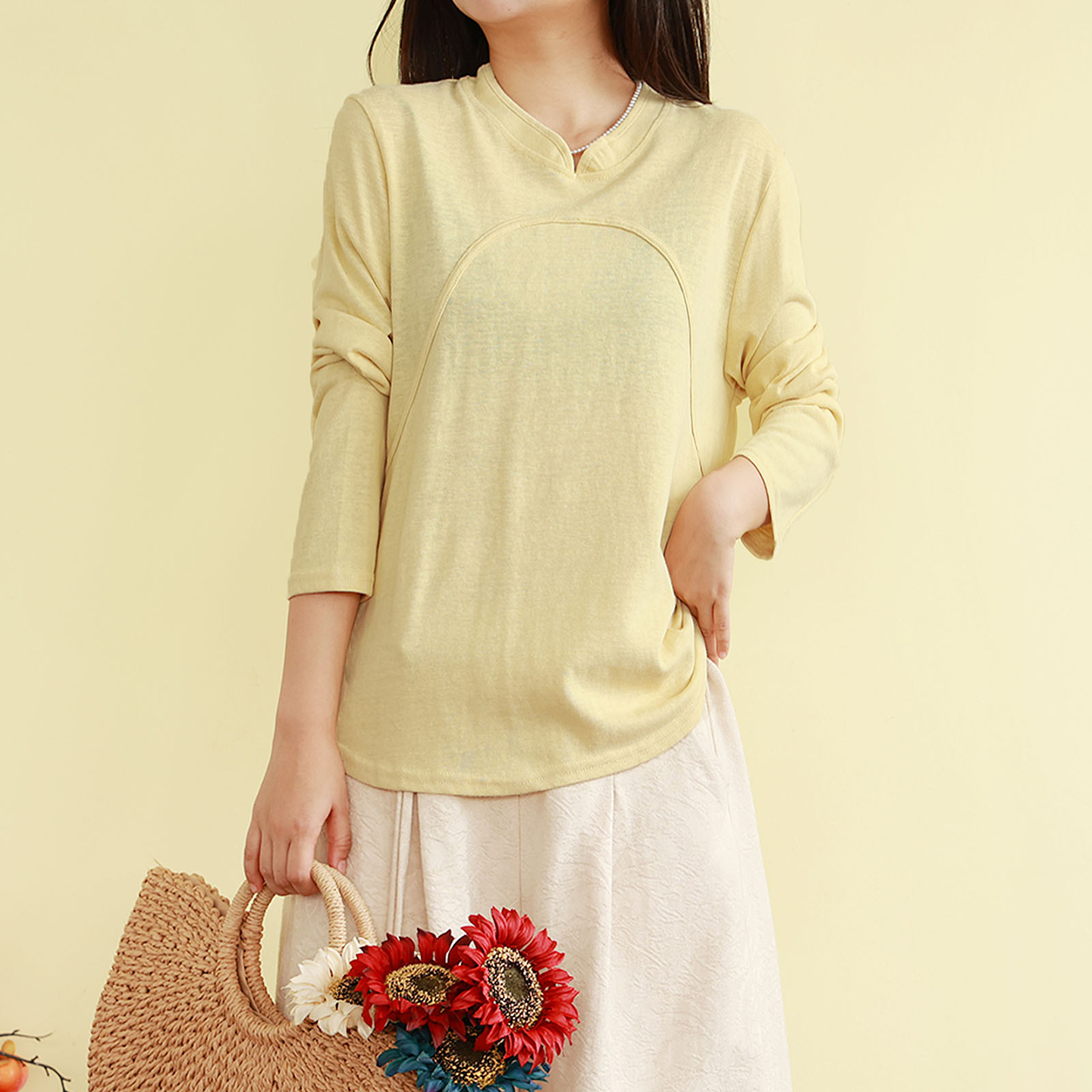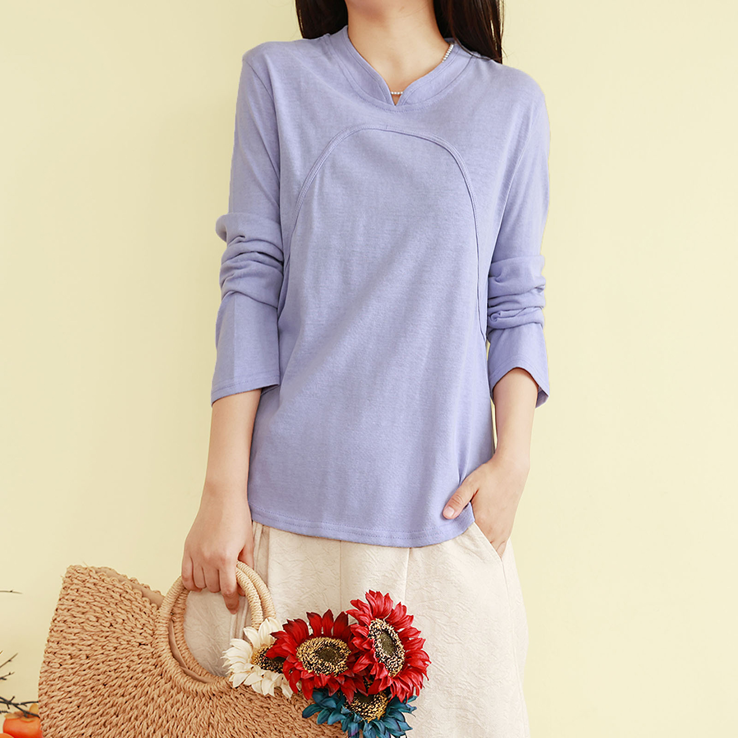 复古文艺纯色打底衫女装套头长袖T恤秋冬季新款宽松百搭上衣简约