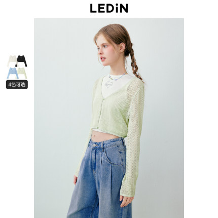 乐町镂空针织开衫春夏空调衫V领廓形长袖罩衫薄款贝壳衫