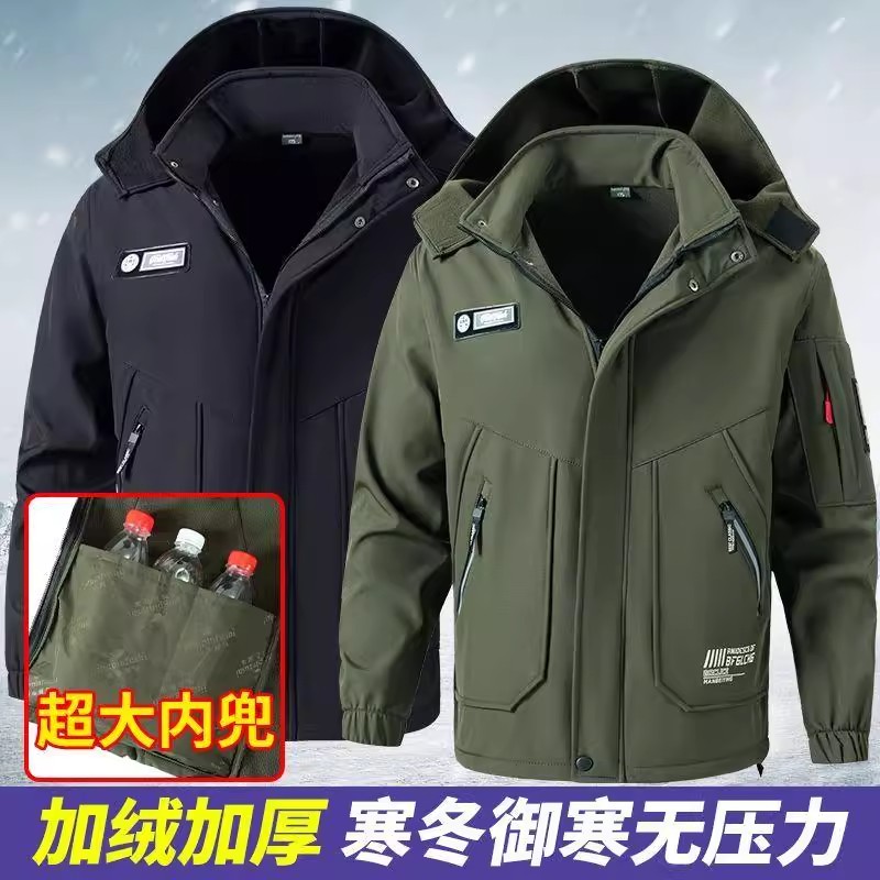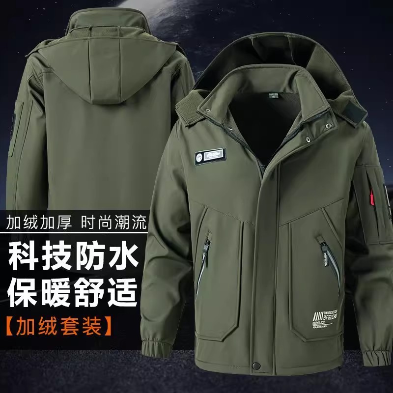 冬季加绒加厚工作服套装男防寒保暖防水耐磨工装劳保服户外冲锋衣