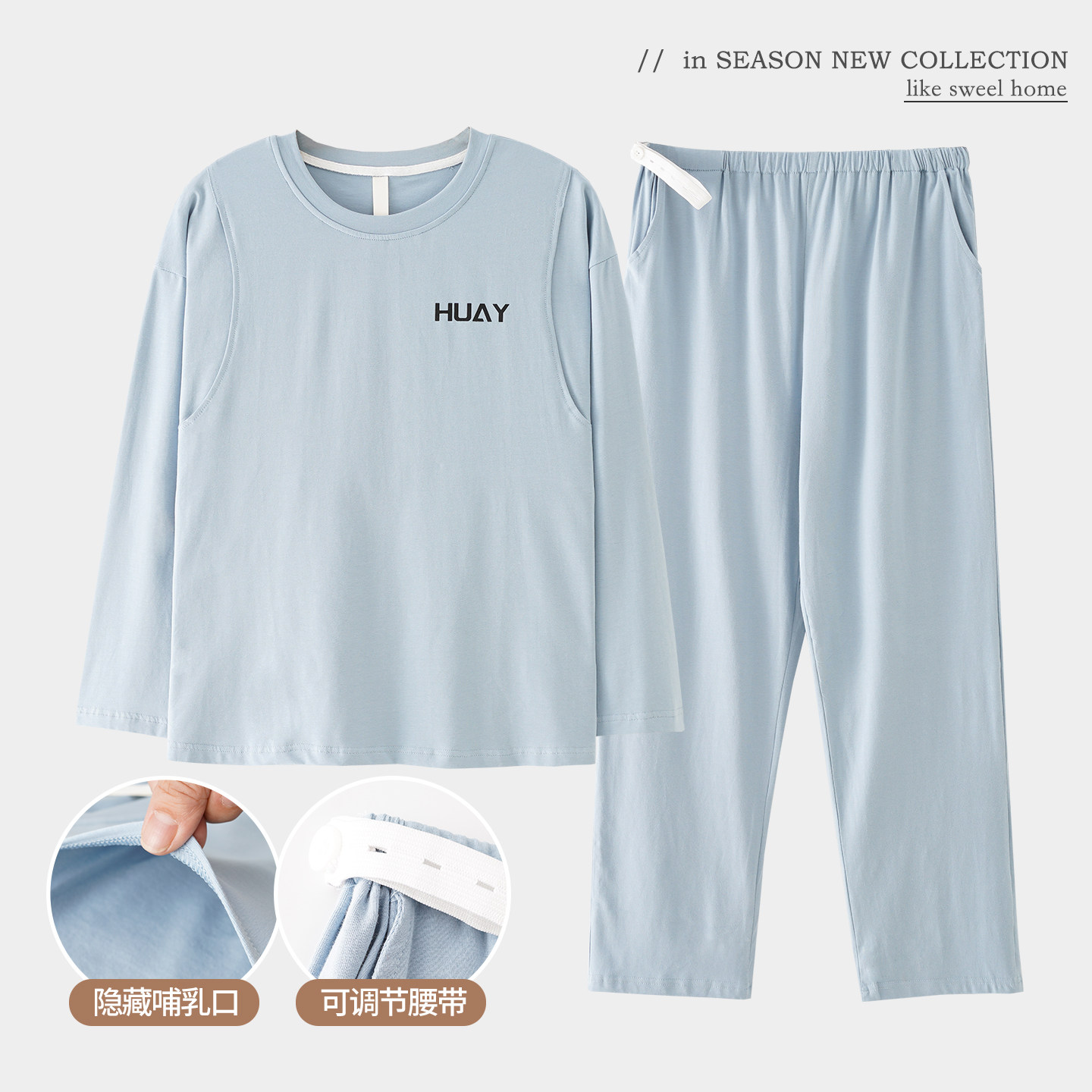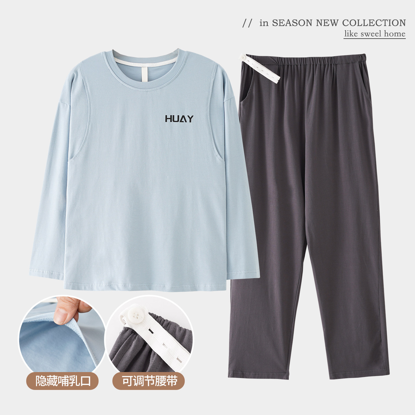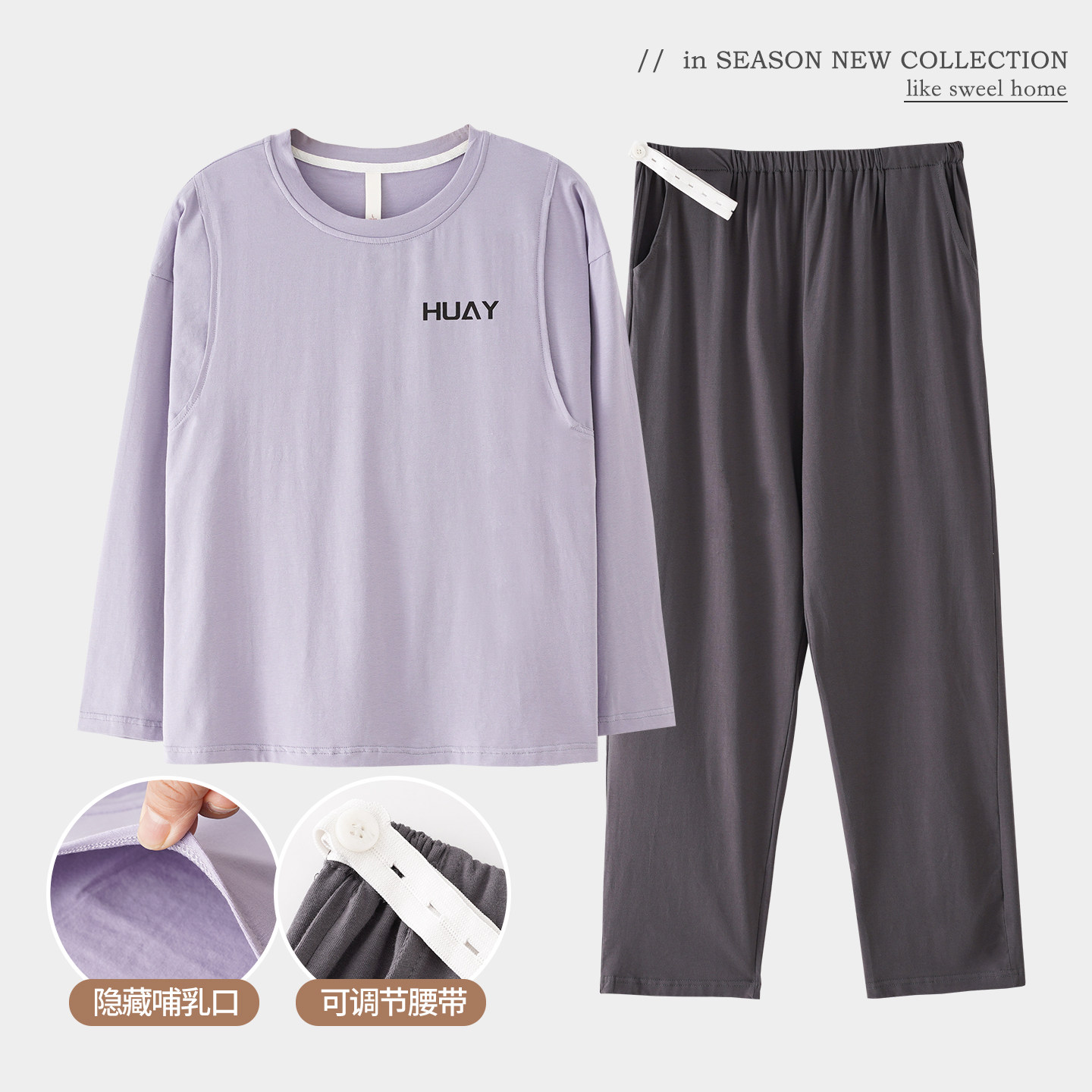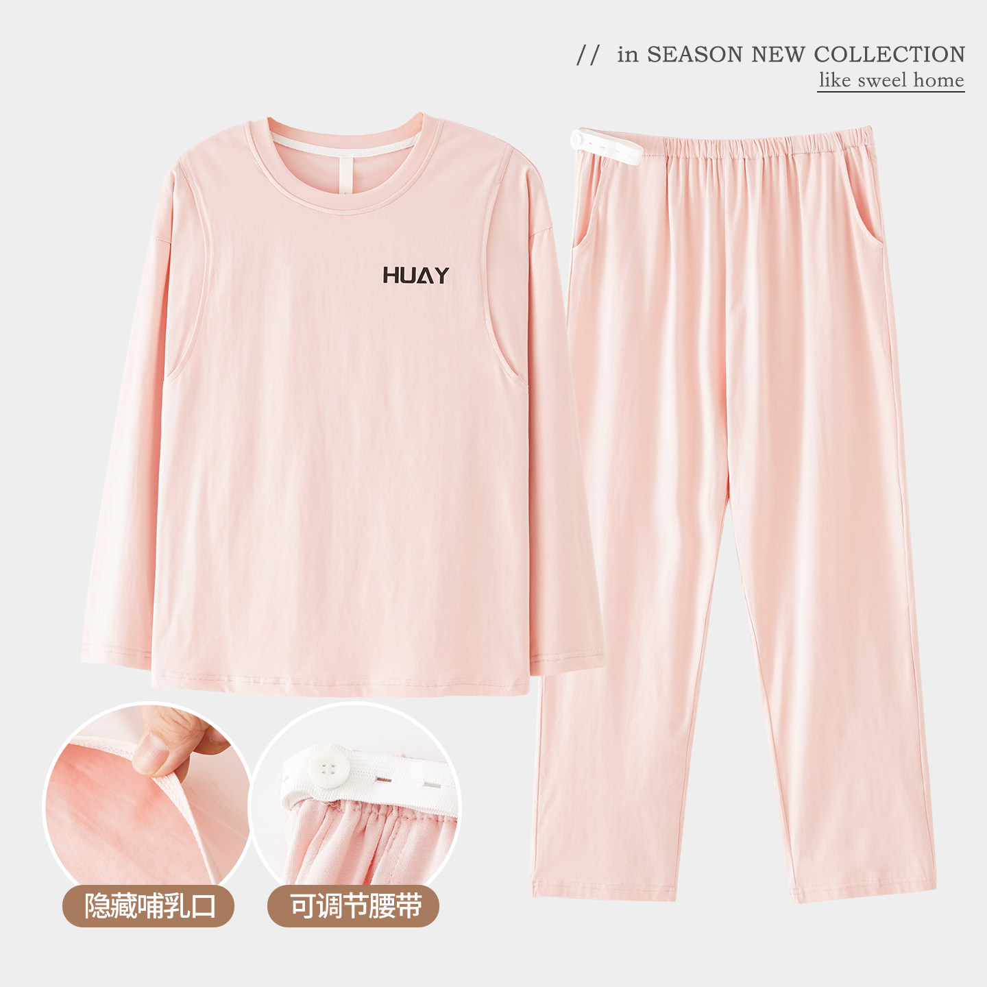 纯棉爽棉长袖月子服孕妇睡衣春秋不勒肚产后10大码哺乳喂奶家居服