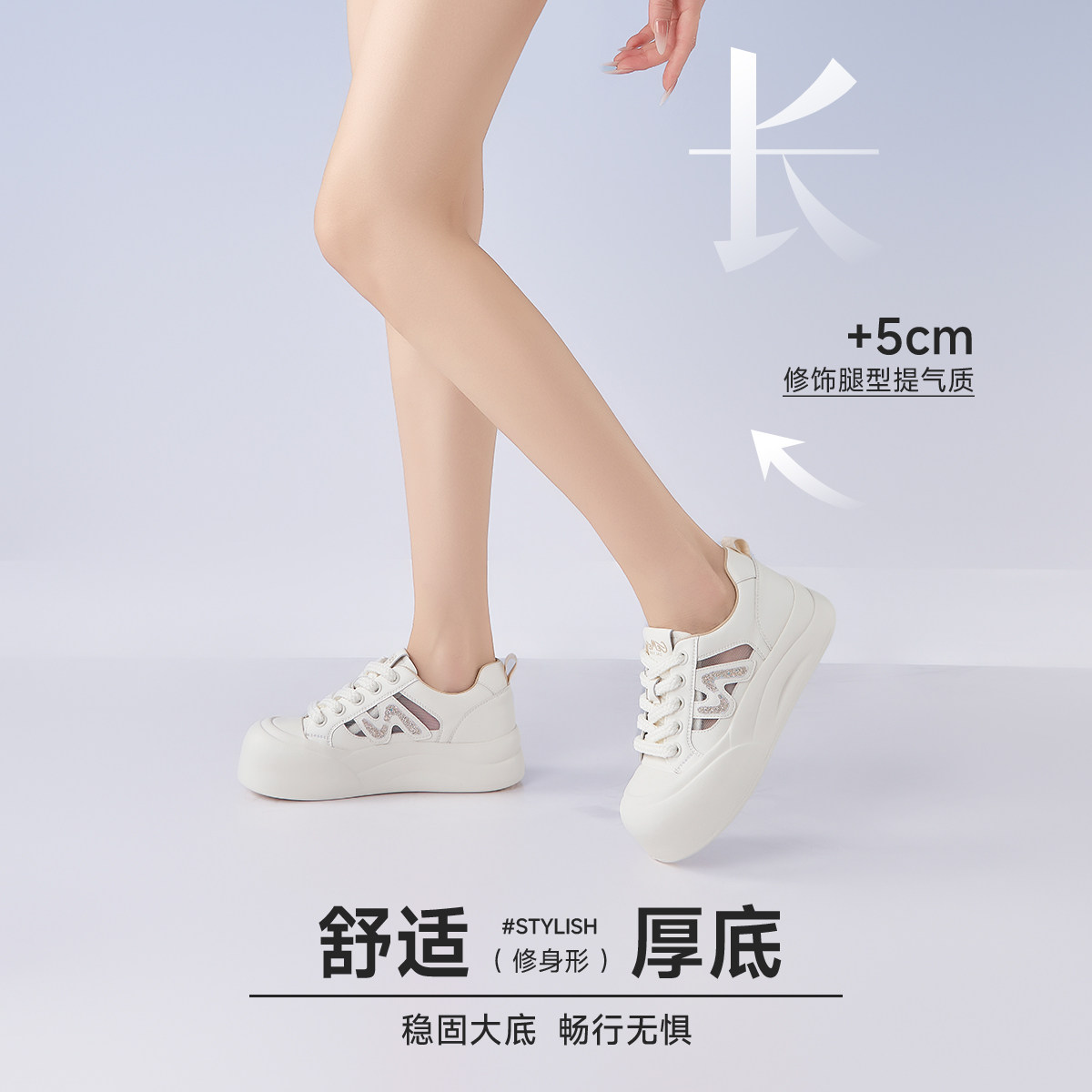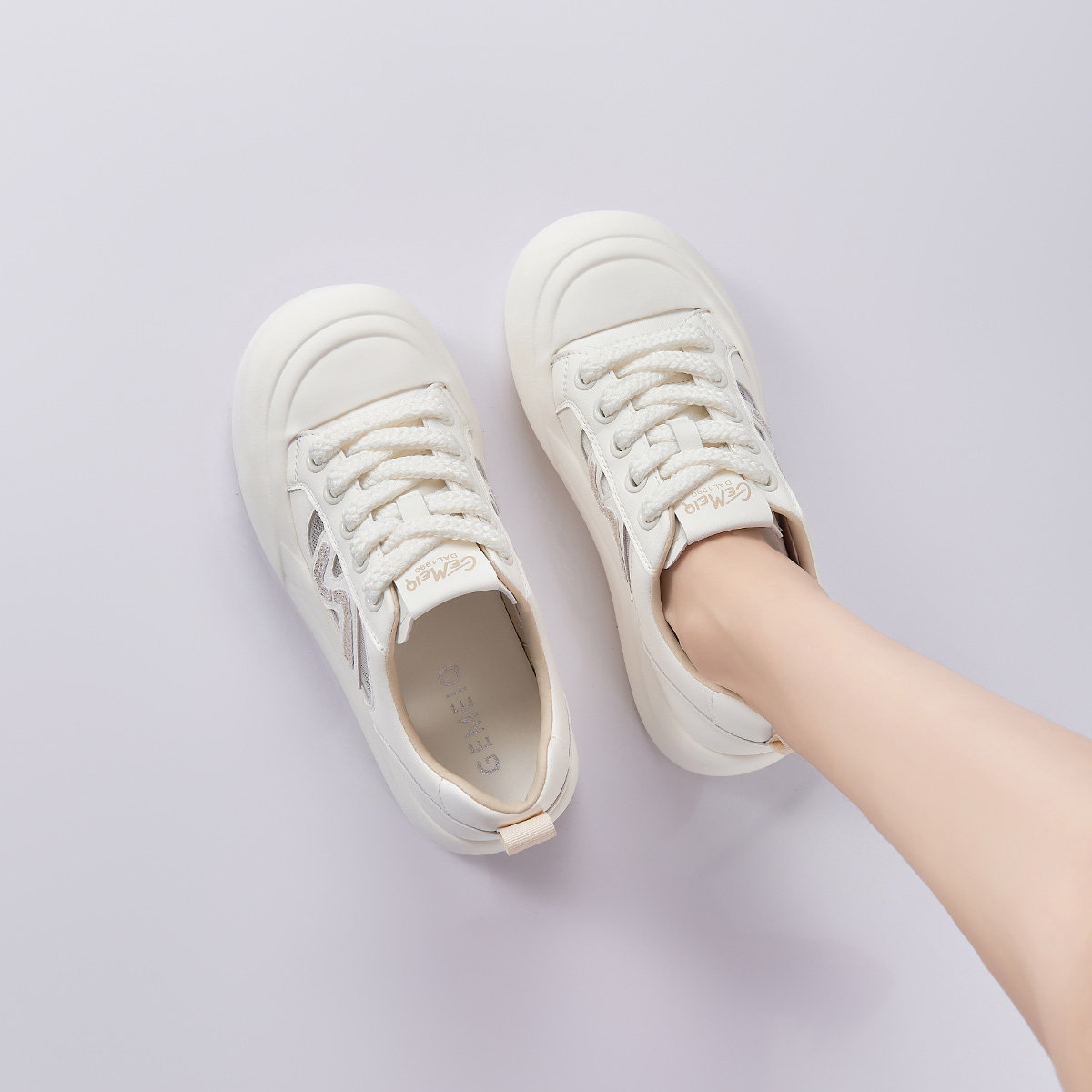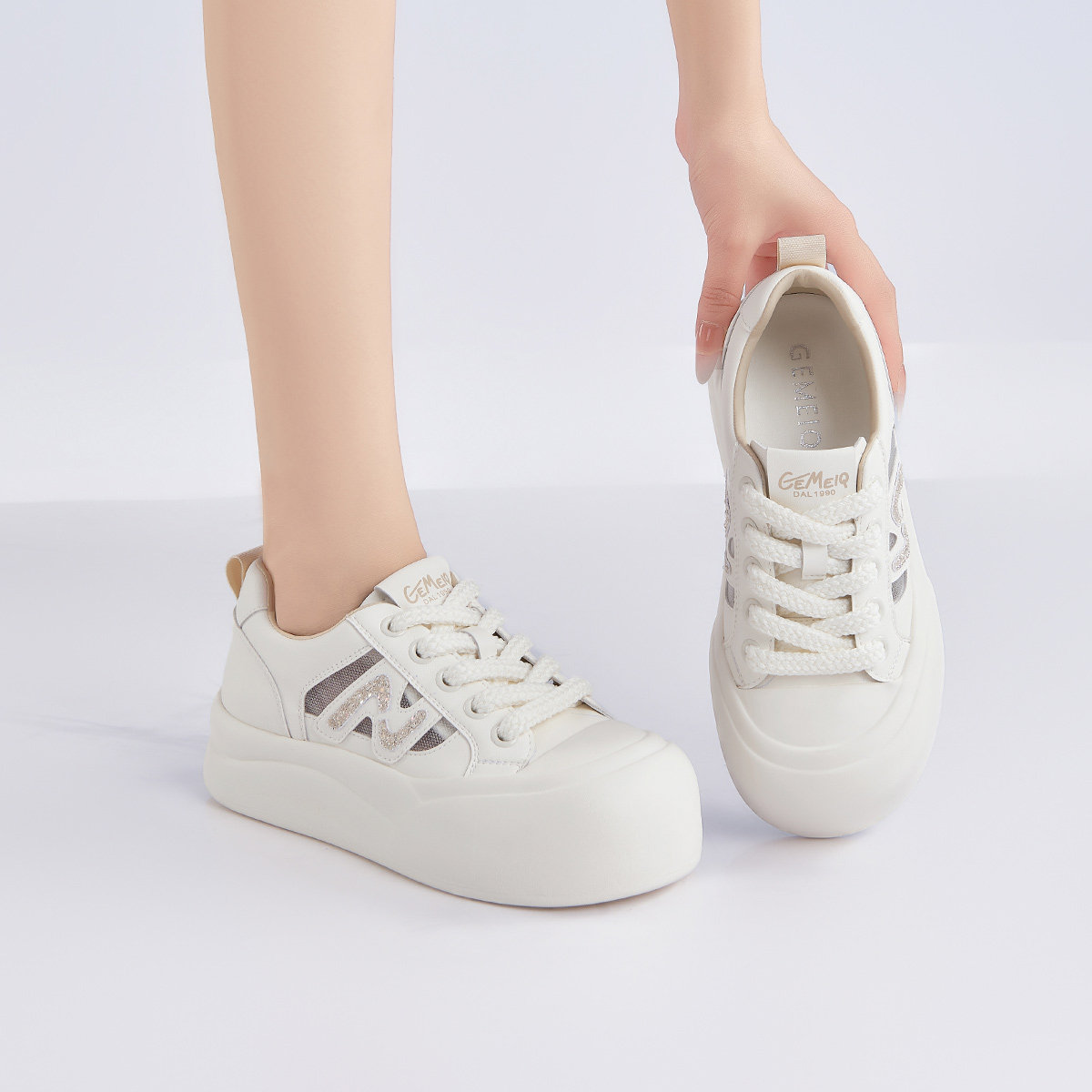 戈美其商场同款小白鞋女款2025新款春季厚底增高显脚小百搭休闲鞋