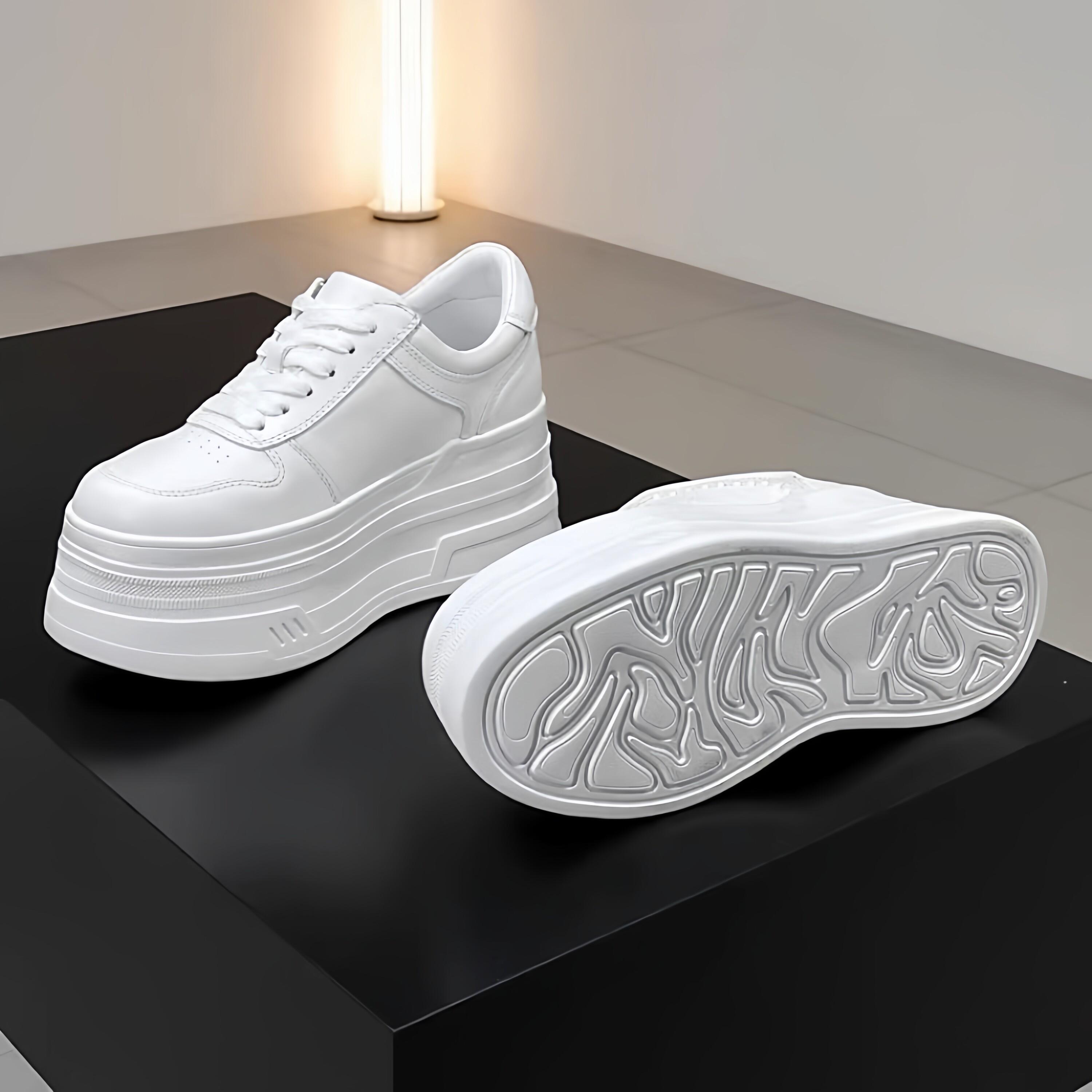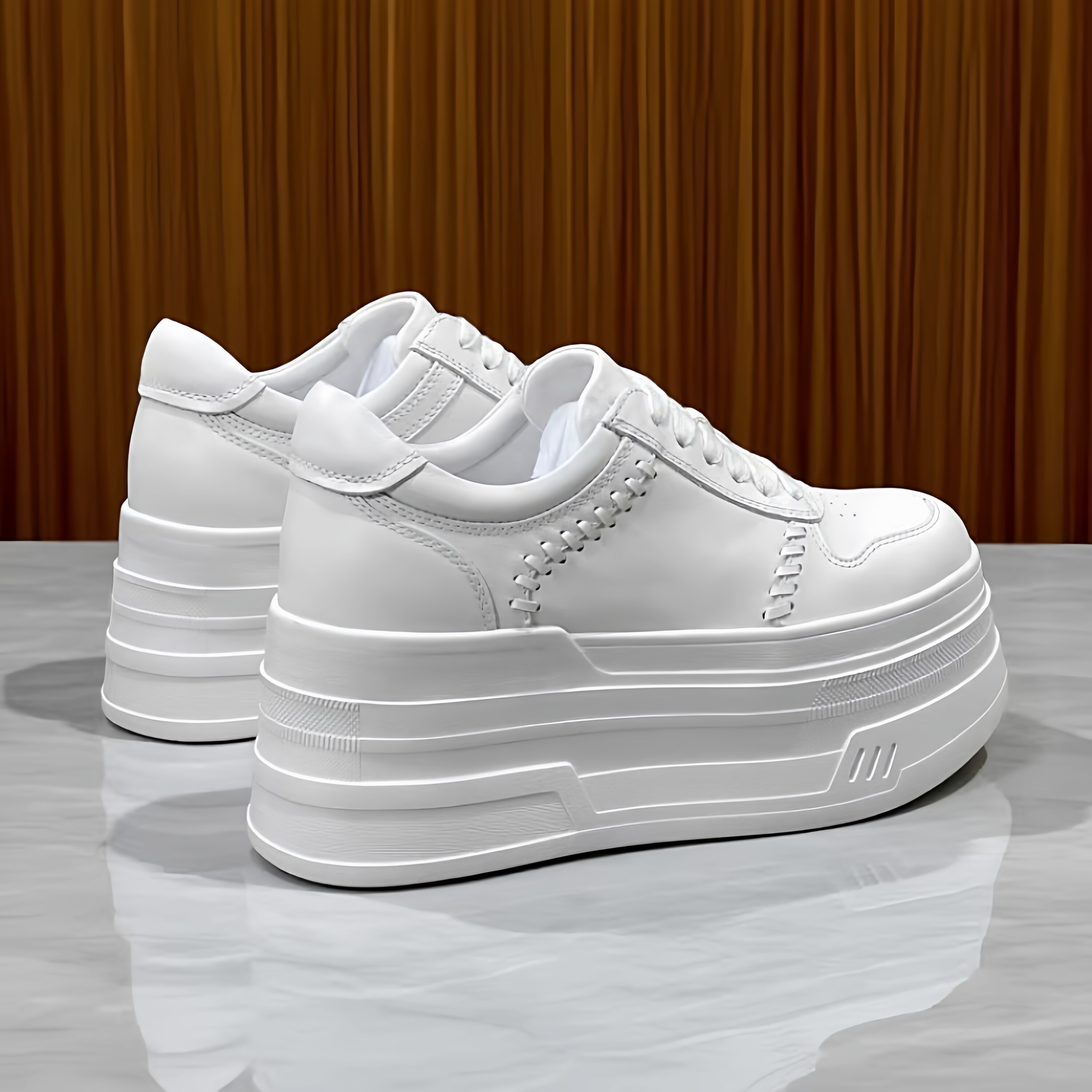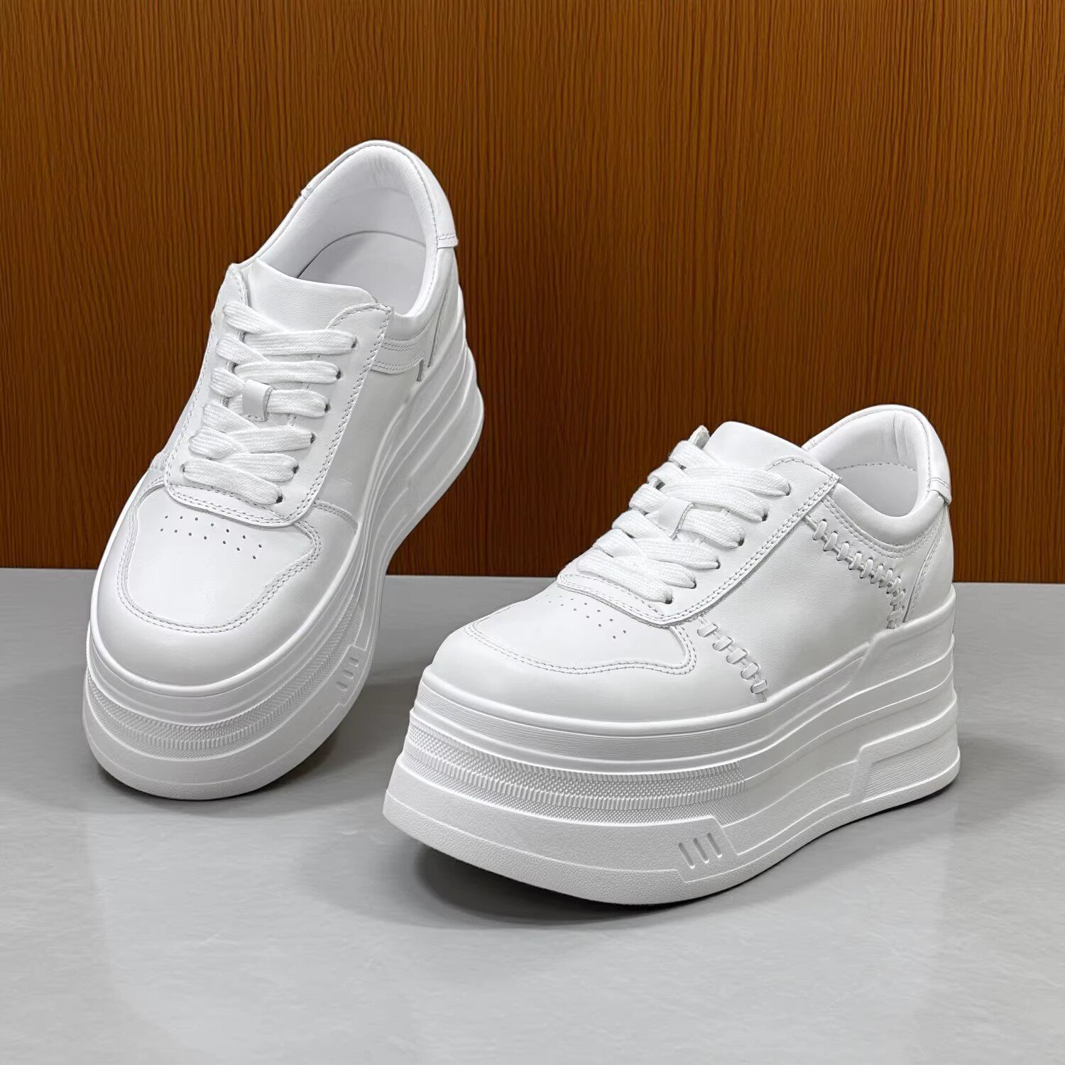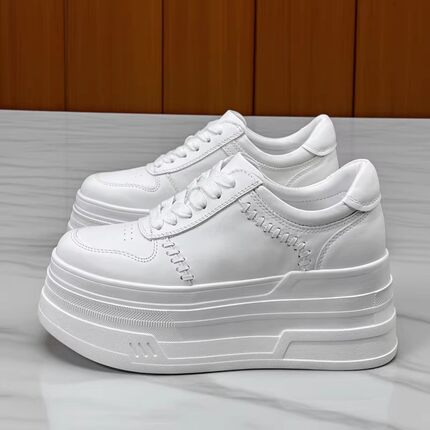 增高鞋8CM2026春秋季新款真皮小白鞋女小个子白色编织厚底松糕鞋