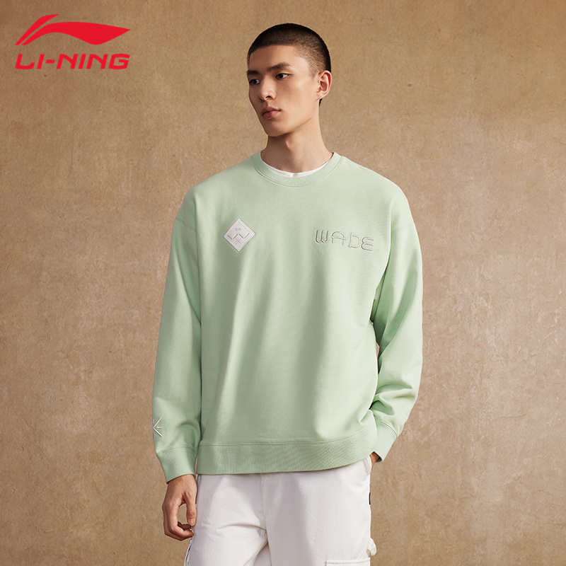 李宁卫衣韦德系列冬季男款简约加绒宽松休闲套头无帽卫衣AWDTB79