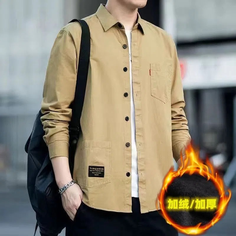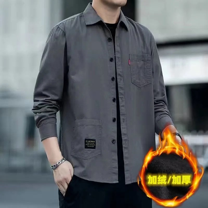 冬季加绒加厚免熨烫宽松版衬衫男士长袖休闲工作服衬衫秋冬季外套