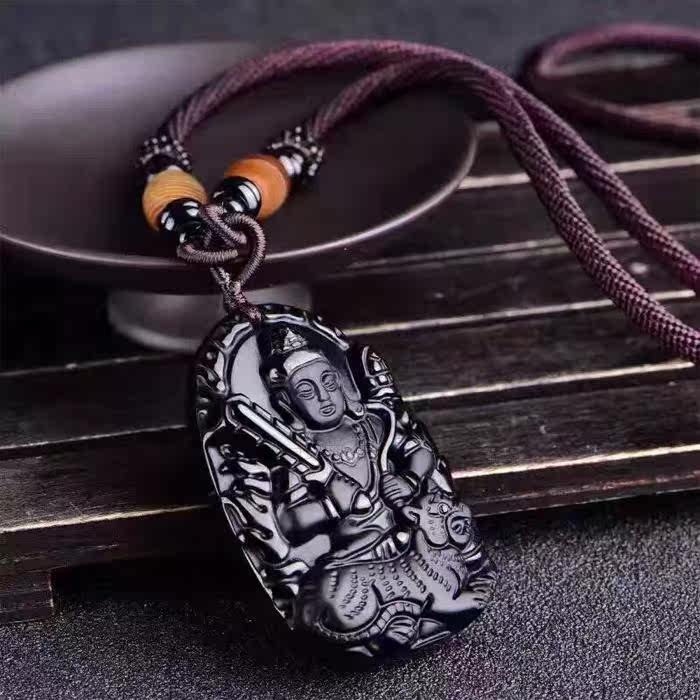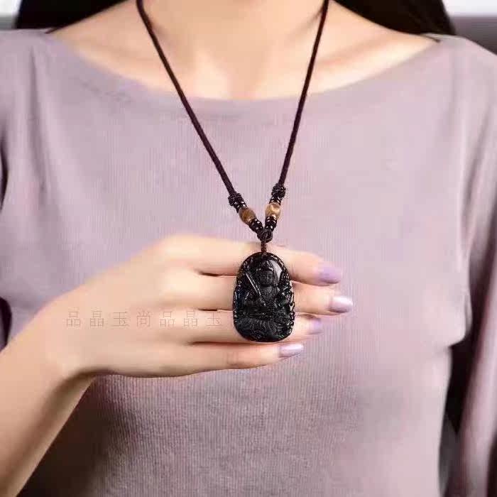天然黑曜石虚空藏菩萨吊坠 男女生肖虎猴本命佛守护神项链