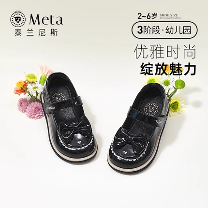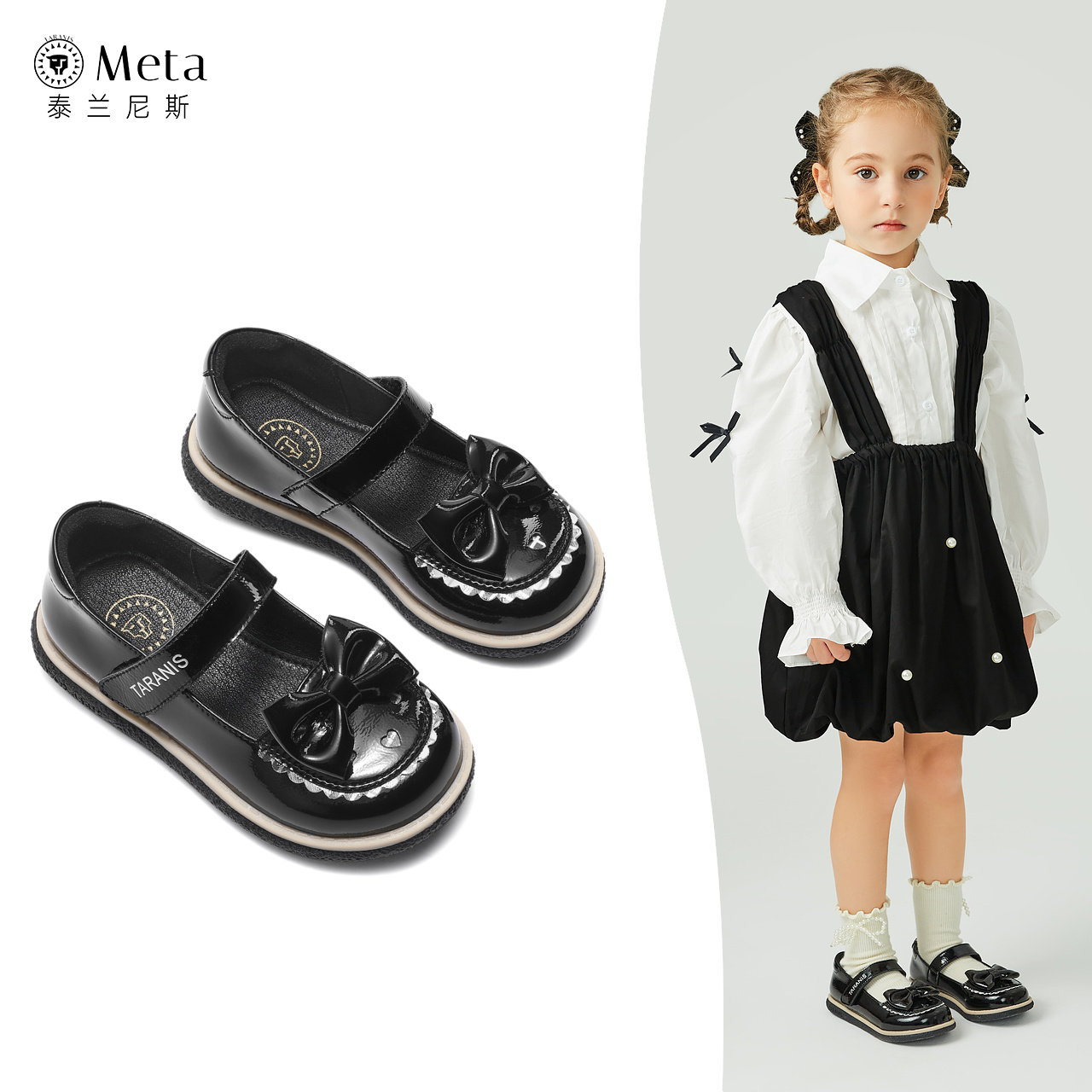 泰兰尼斯meta女童皮鞋2023春季新款儿童鞋宝宝软底演出小黑鞋单鞋