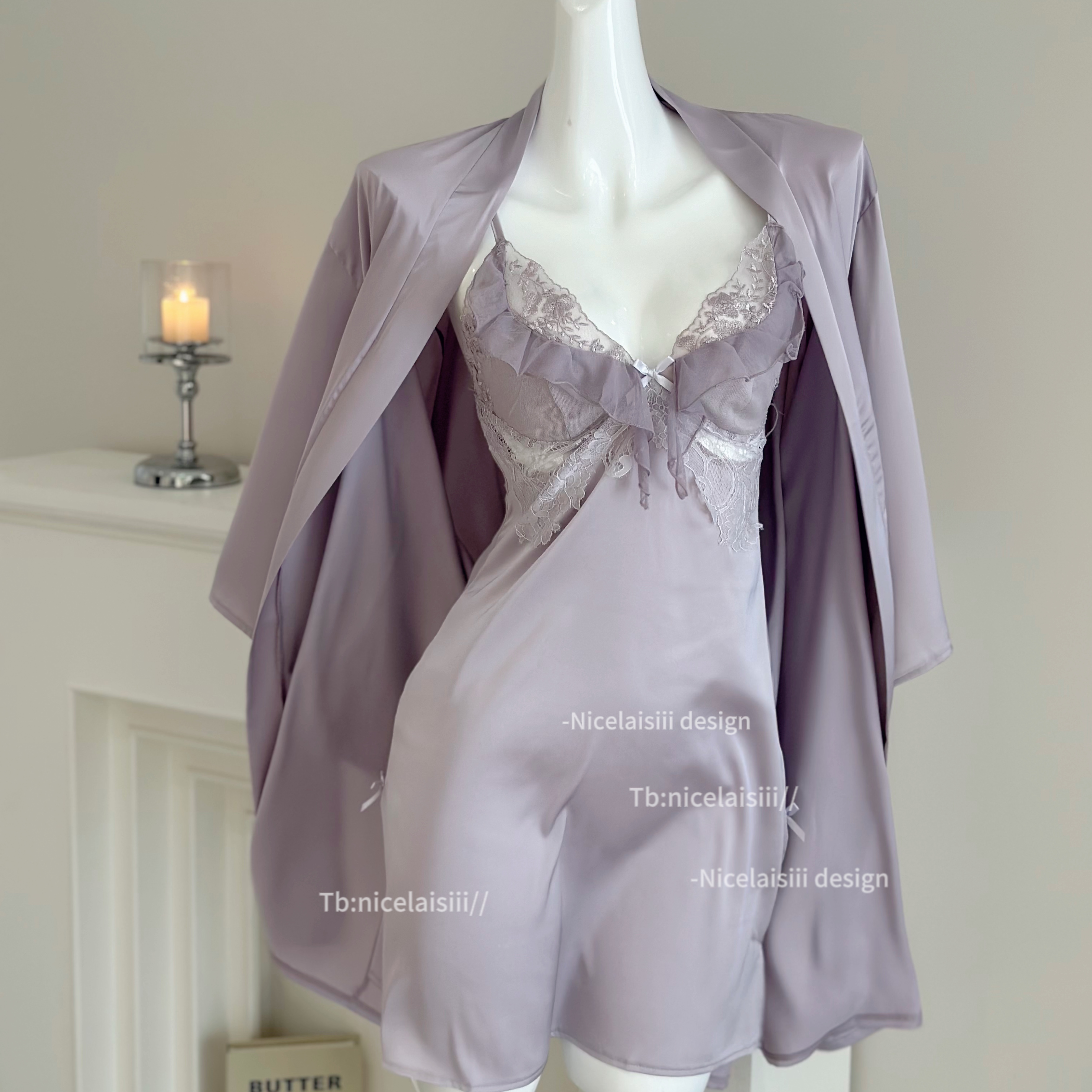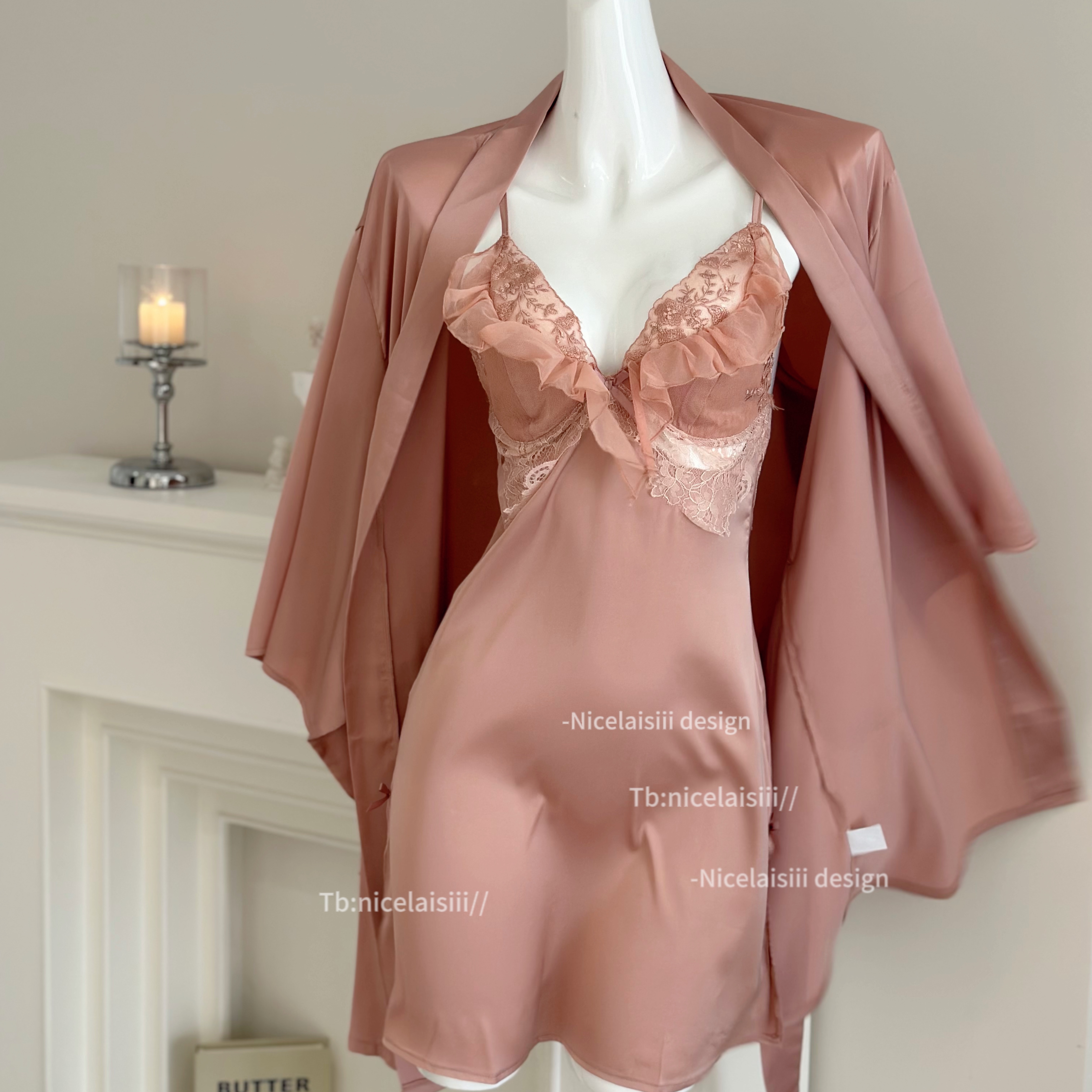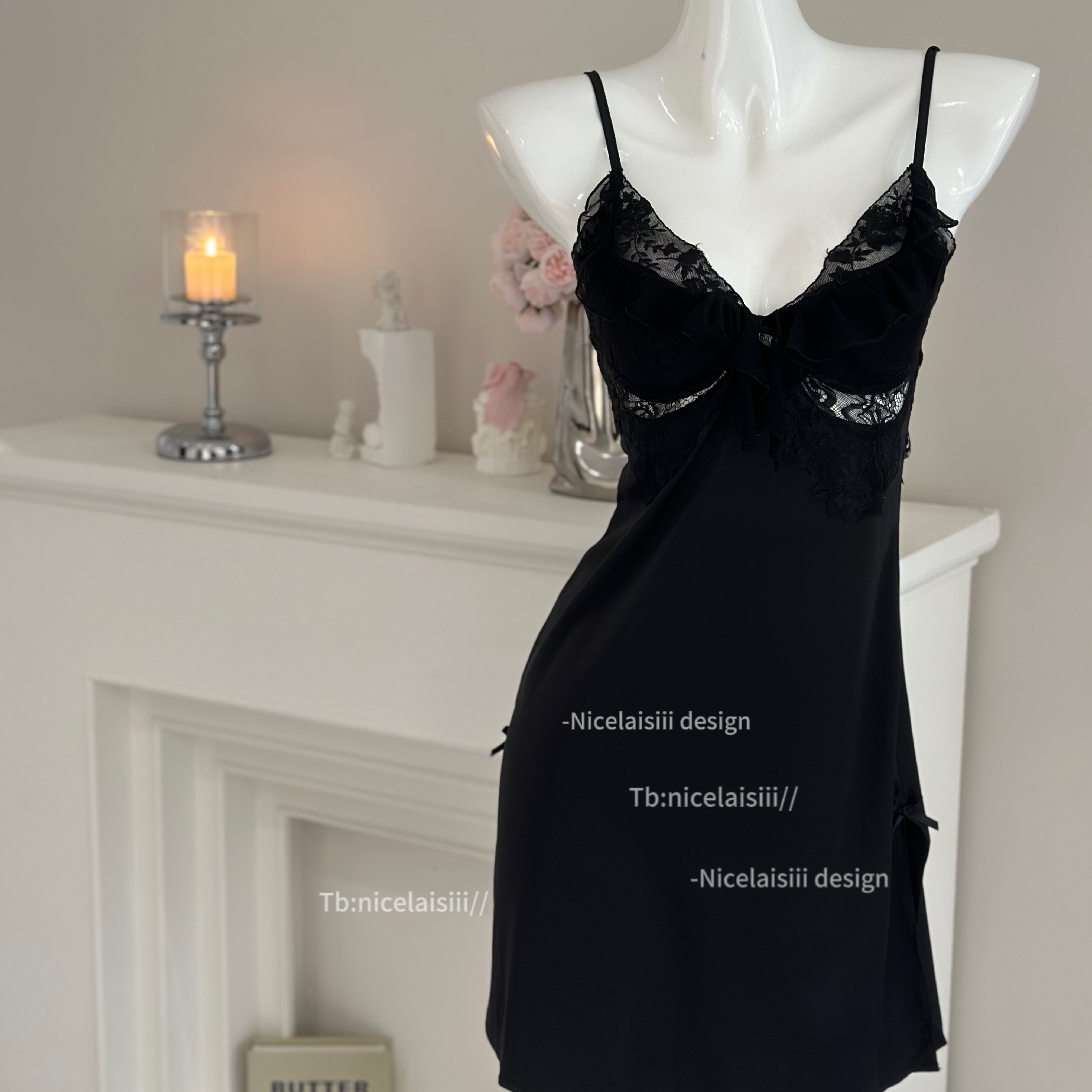 Nicelaisiii隐衫之欲 小胸友好带胸垫蕾丝睡裙缎面纯欲风性感裙子