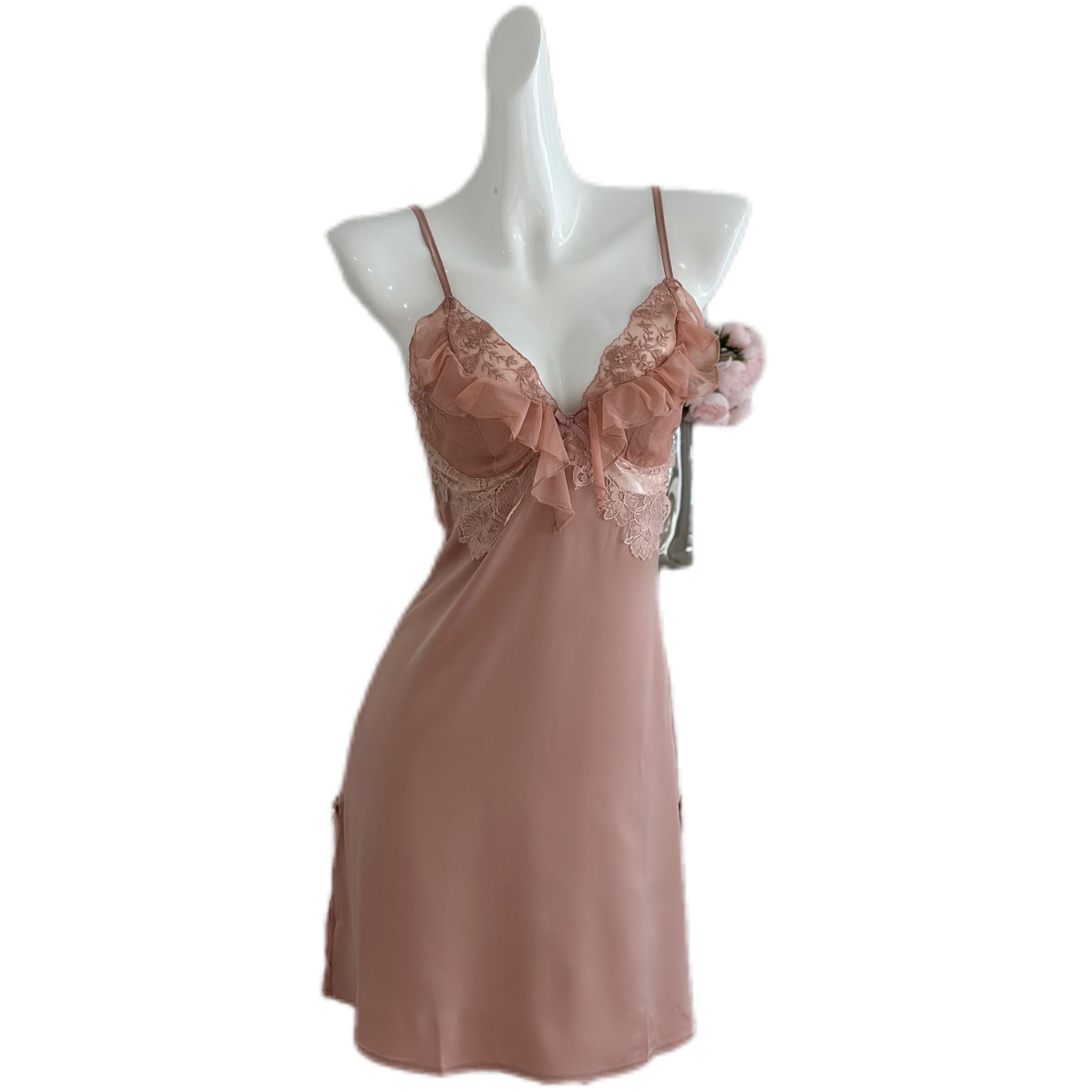 缎面蕾丝小胸友好睡裙纯欲辣妹