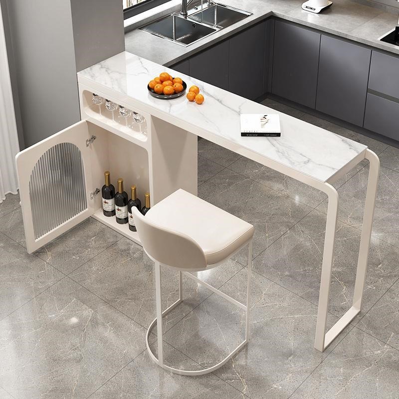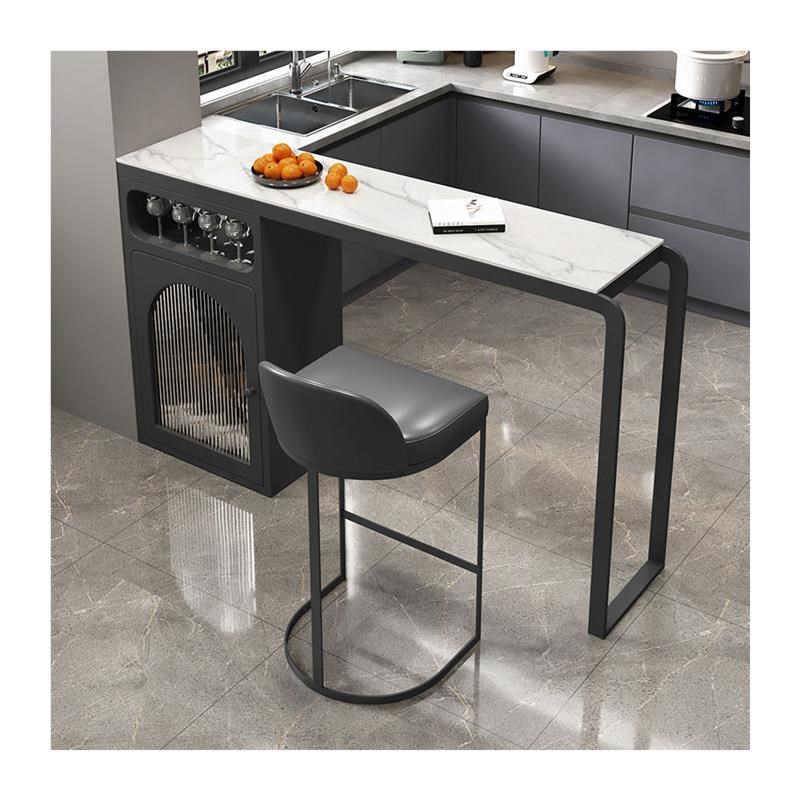 奶油风开放式厨房岛台岩板吧台桌家用客厅靠墙隔断阳台休闲高脚桌