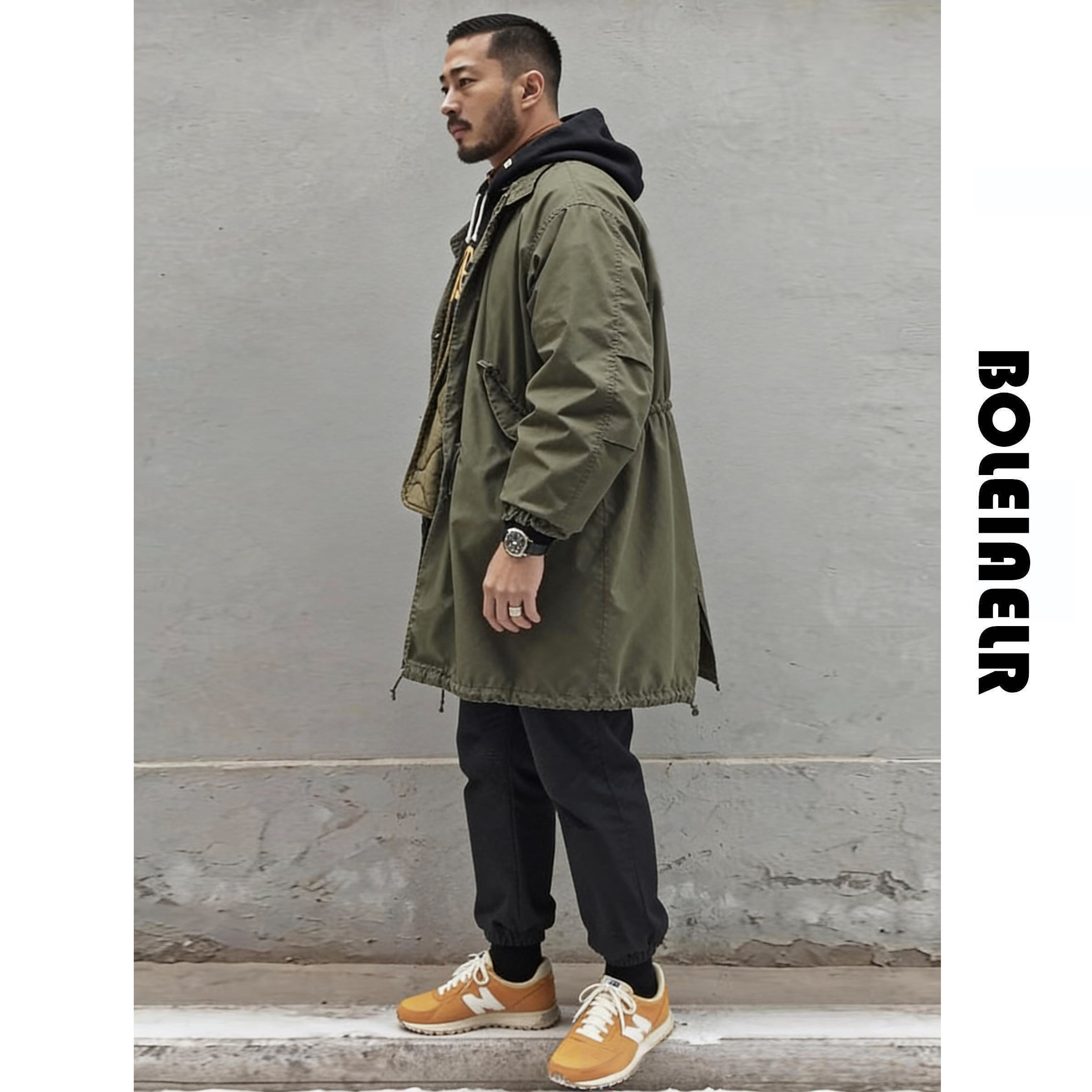 2026春季美式复古M65战壕派克服鱼尾风衣男parka长款工装大衣外套