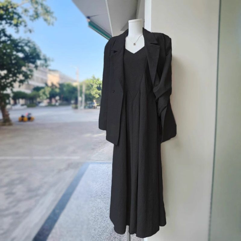 大码高级感西装吊带连衣裙两件套