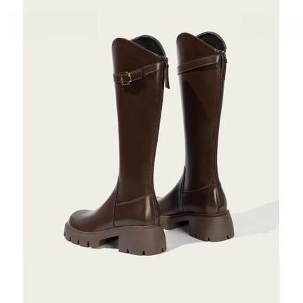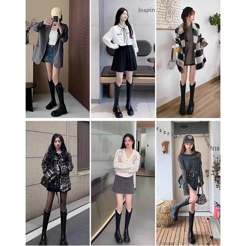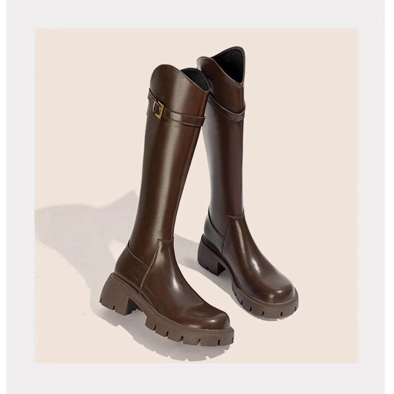 厚底长筒靴女2025秋冬新款显瘦V口不过膝高筒骑士靴小个子马丁靴