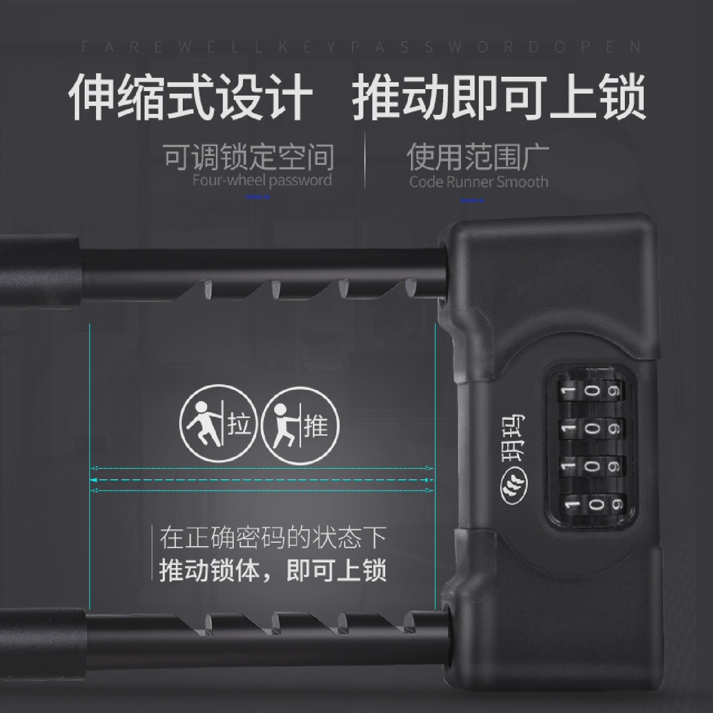 玥玛钢化有框玻璃门锁专用密码锁u型拉门免打孔办公室商铺公司