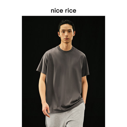 nice rice好饭 r.系列240G匹马棉休闲罗纹圆领短袖T恤男NGC02073