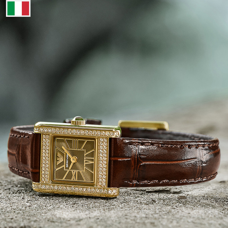 【自营】Armani阿玛尼手表女小方表复古时尚金色气质石英AR11705