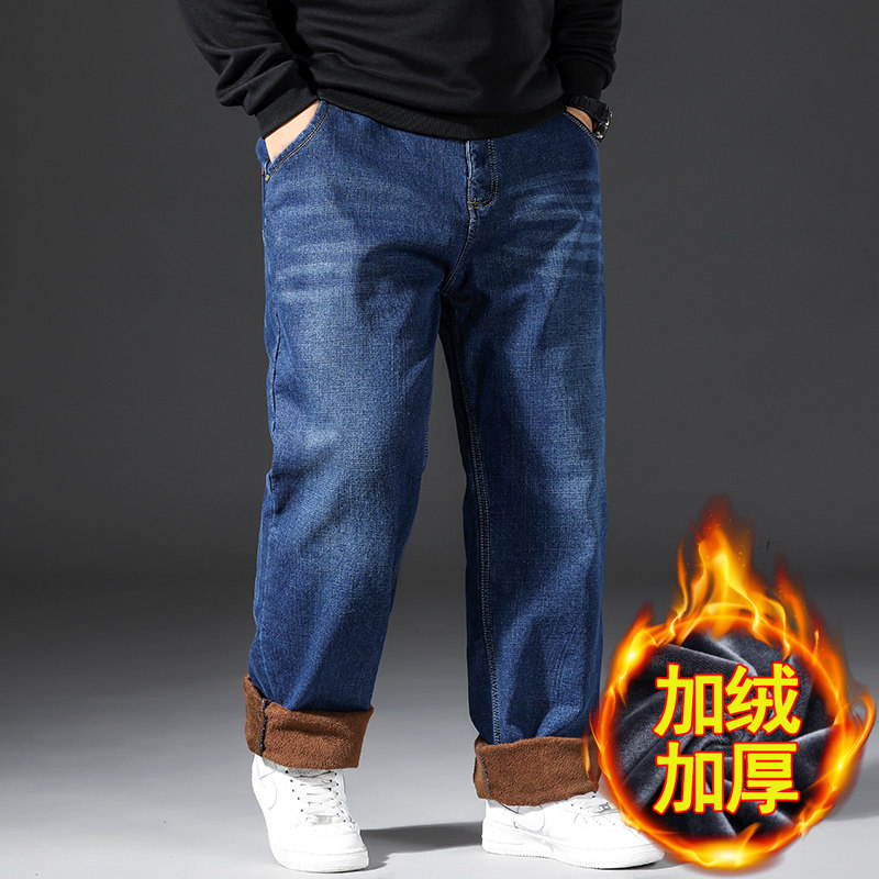 秋冬款加绒加厚牛仔裤男宽松直筒加肥加大码肥佬运动商务阔腿裤潮