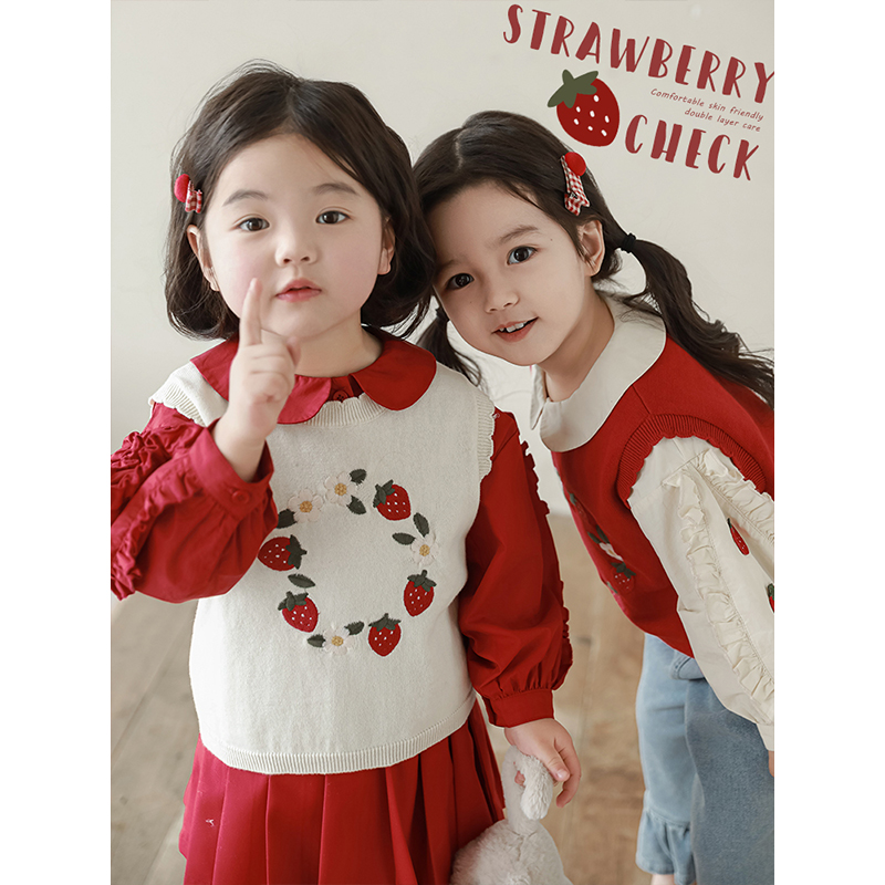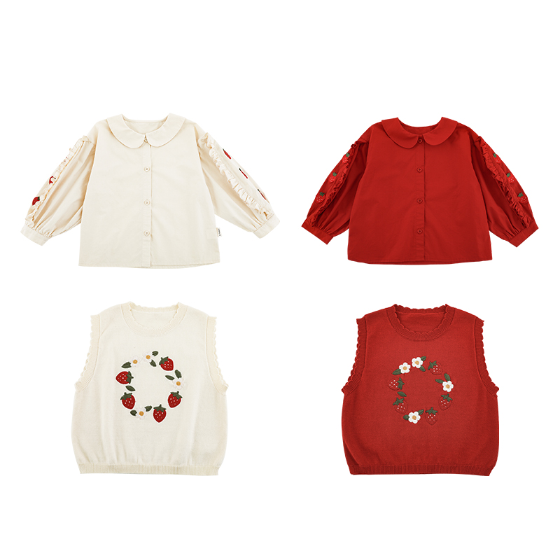 幼悠女童2025春秋套装儿童甜美可爱灯笼袖纯色衬衫花朵刺绣马甲潮