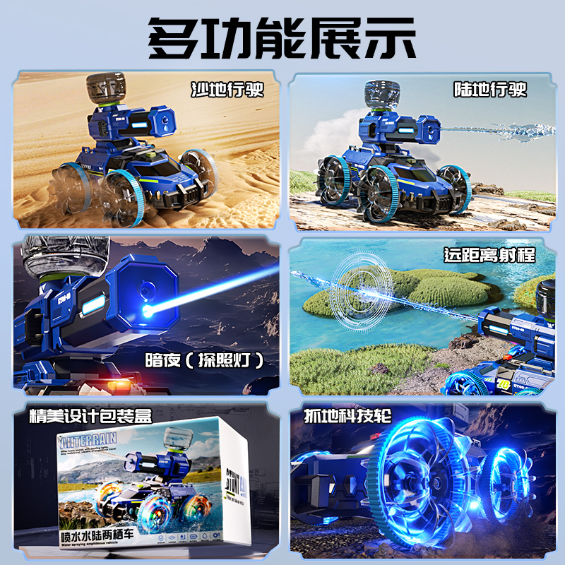 水陆两栖遥控四驱越野电动汽车男女孩高级可开炮的黑科技坦克玩具