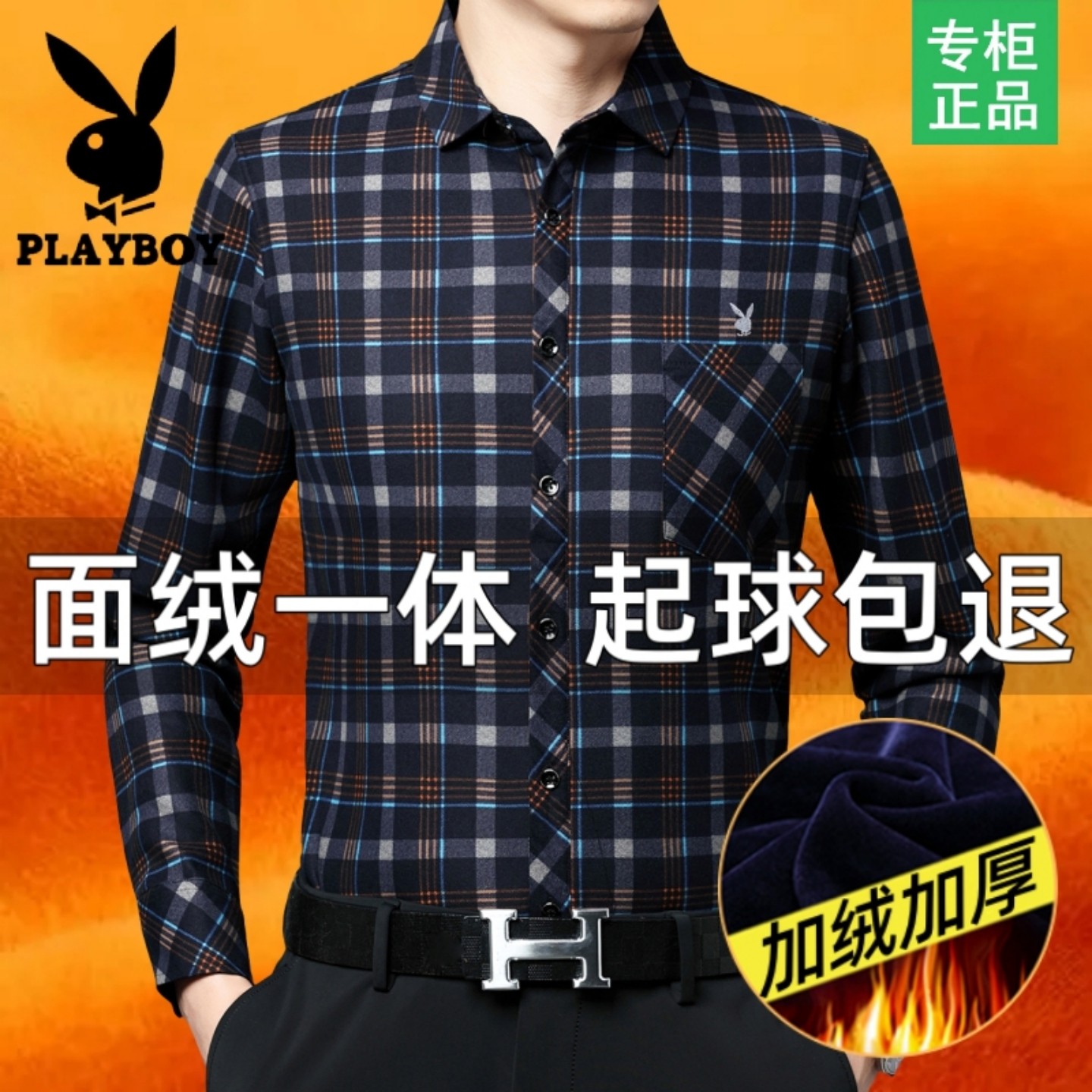 花花公子保暖一体绒加厚衬衫男