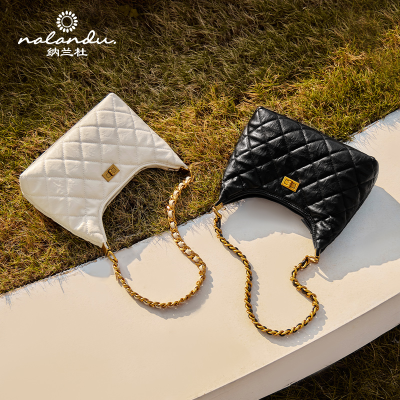 纳兰杜包包女式2025新款高级感斜挎包女包白色菱格链条包女单肩包