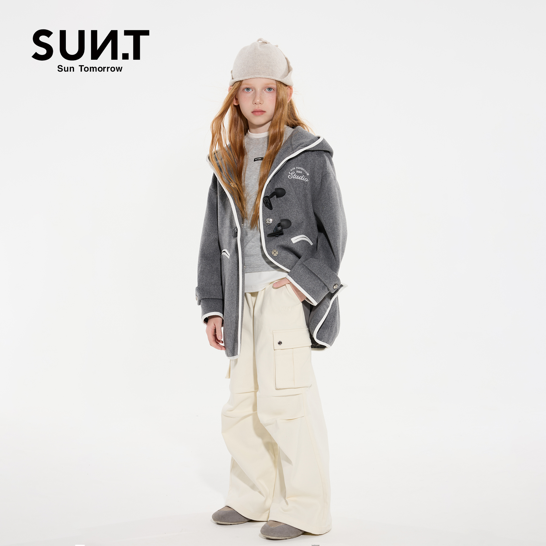 suntomorrow儿童休闲裤2025秋装新款女童系带纯色直筒工装长裤子