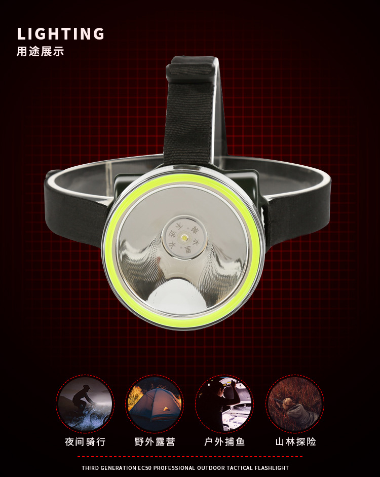 雅格充电式头灯锂电池防水强光远射户外夜钓鱼露营骑行头戴式电筒