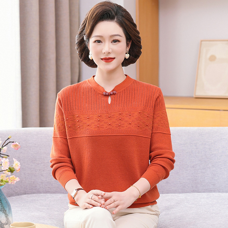 妈妈春秋装国风盘扣长袖毛衣小衫女洋气针织打底衫中老年秋冬上衣
