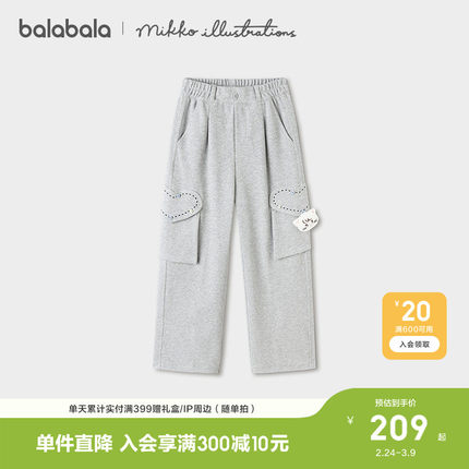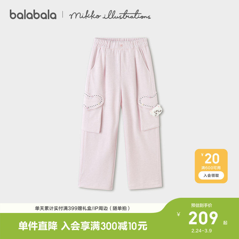 【mikkoIP商场同款】巴拉巴拉童装女童长裤直筒工装裤2026春新款