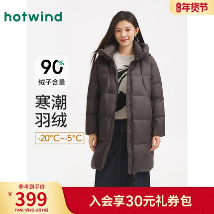 热风2025年冬季连帽中长款羽绒服