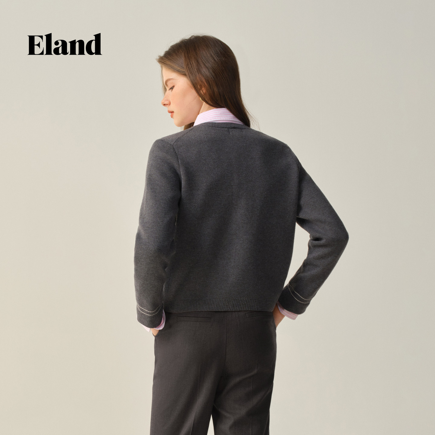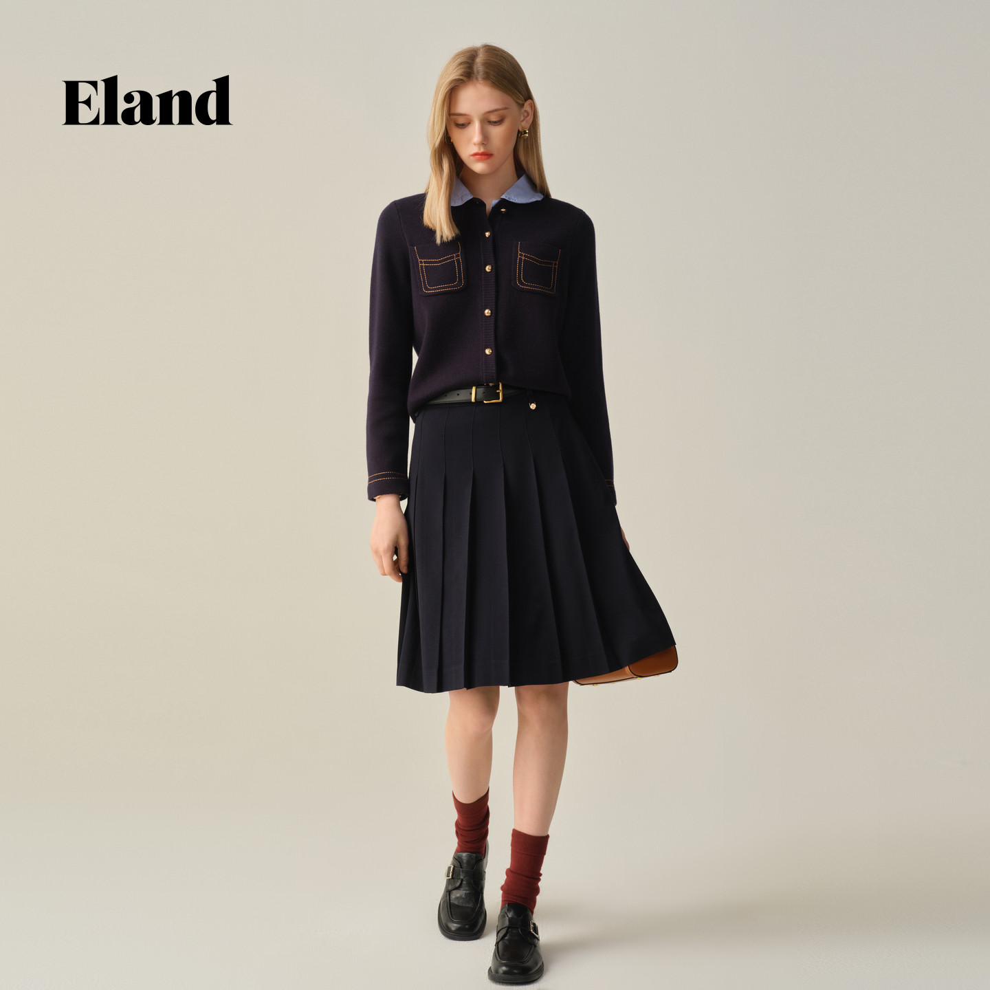 ELAND毛针织衫假两件娃娃领