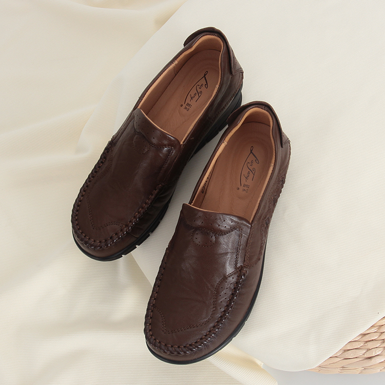 蓝棠女牛皮鞋d1449坡跟深口透气软底一脚蹬妈妈鞋春秋季专柜同款