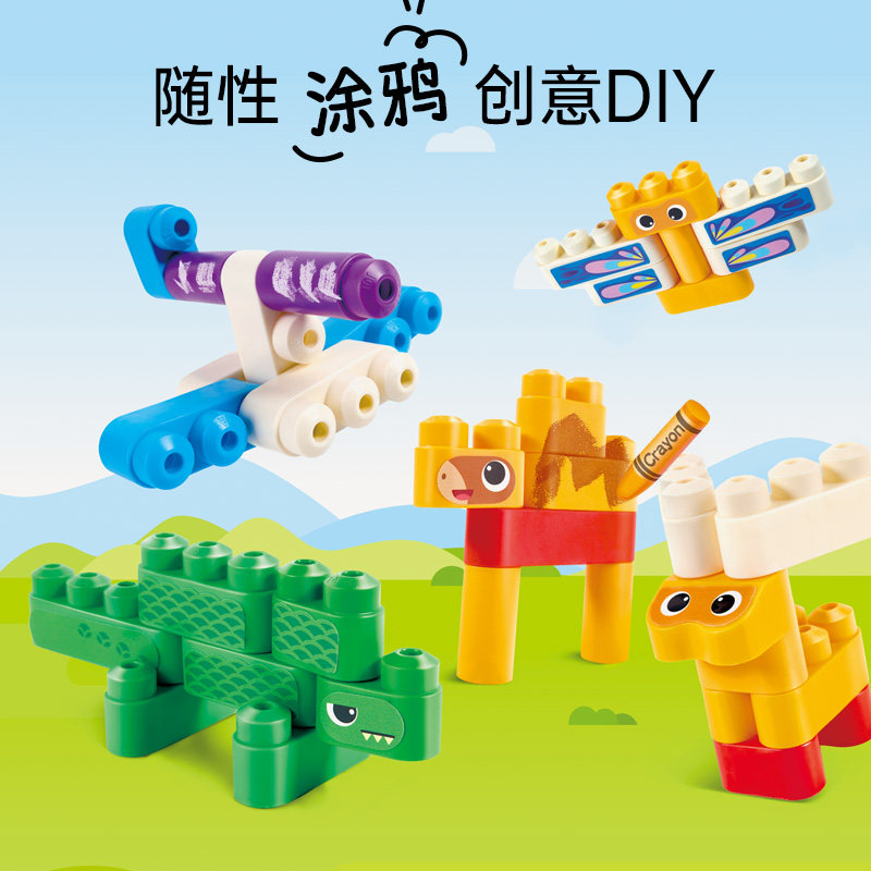 Hape智趣乐园火车积木套PolyM软积木宝宝儿童管道大颗粒益智玩具